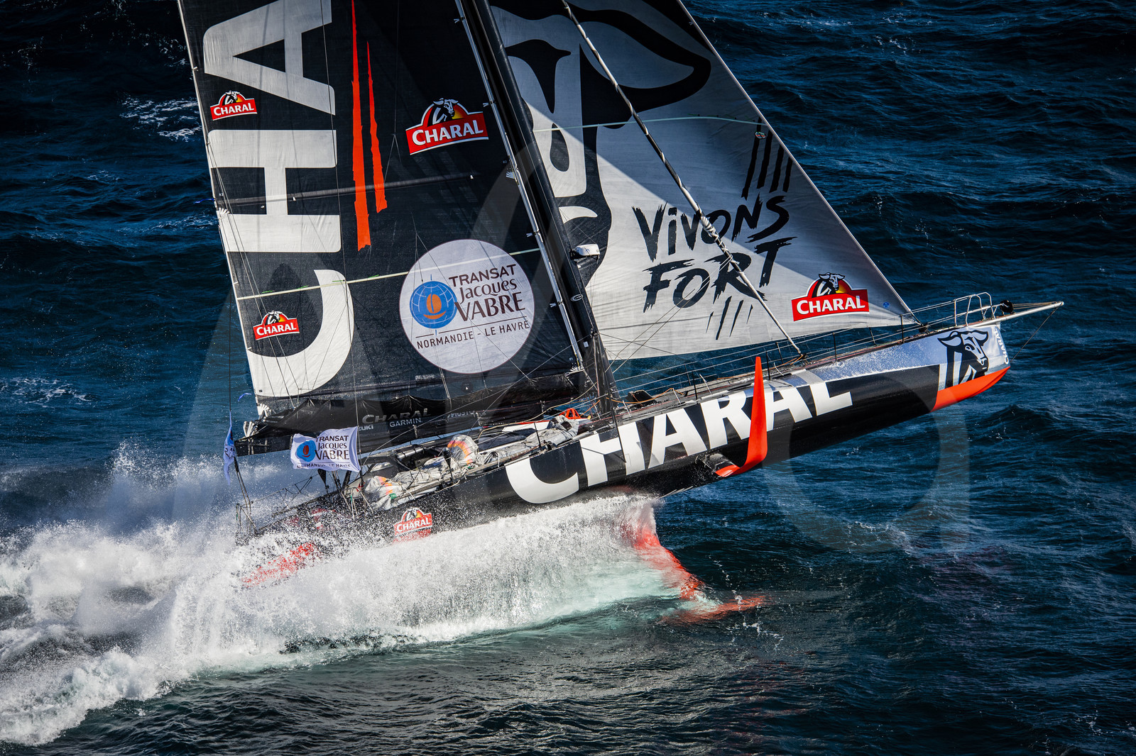| Description | LORIENT, FRANCE - SEPTEMBER 27: French skippers Jeremie Beyou and Christopher Pratt are training on the Imoca Charal, prior to the Transat Jacques Vabre, sailing race in duo from Le Havre to Fort de France, on September 27, 2021 off Lorient, France. (Photo by Bernard Le Bars/ALeA) |