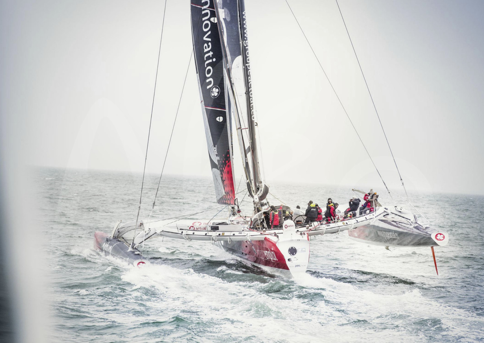 | Description | Sortie en mer sur Actual, avec le skipper Yves Le Blévec, dans le cadre d'une course croisée avec des pilotes de l'Automobile Club de l'Ouest - Photo Goetz Goeppert |
