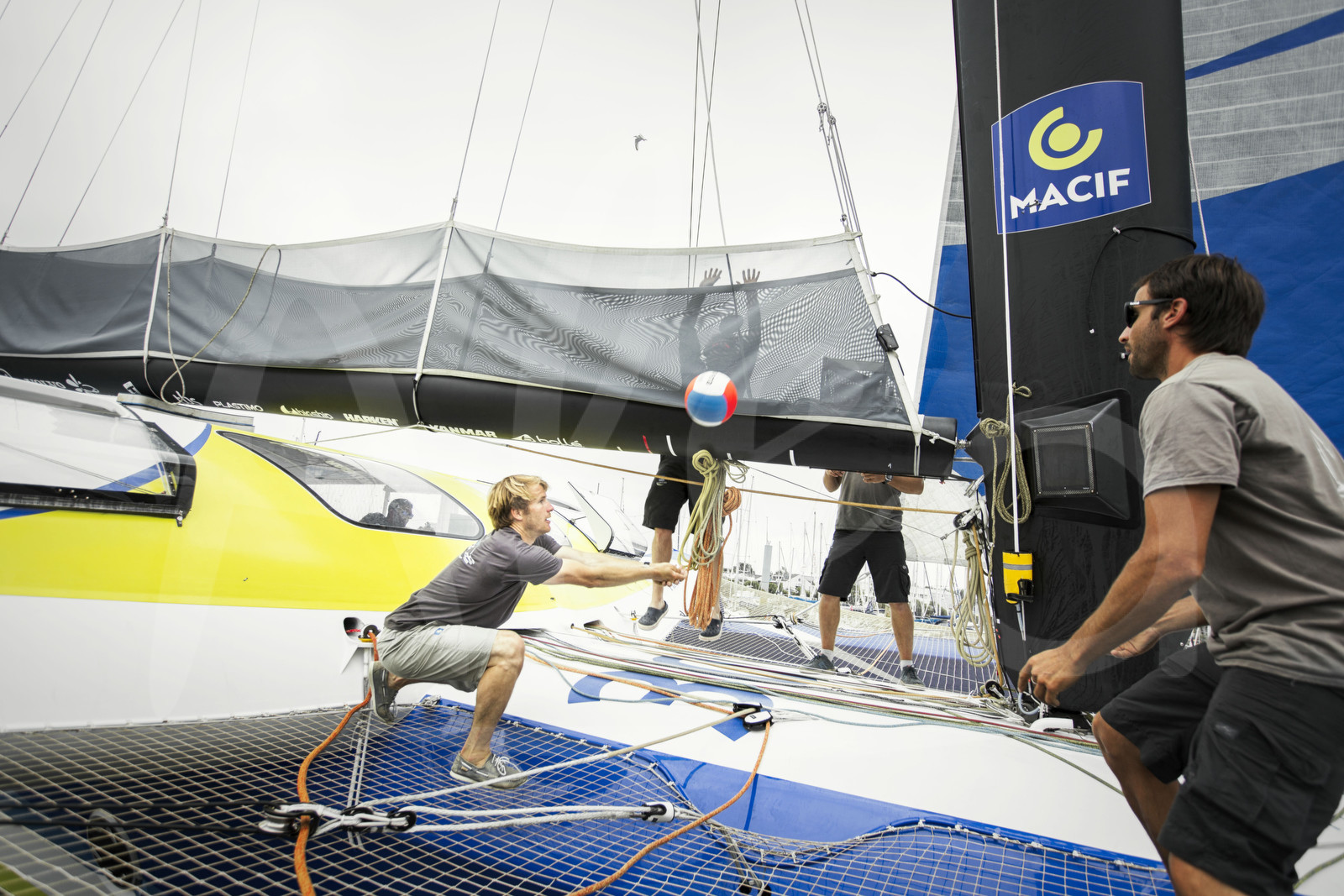 | Description | Olympic games photo series with skipper Francois Gabart and his team playing different olympics sports on his Maxi Tri MACIF, here beach volley, in Port La Foret, on july 20, 2016 - Photo Gotz Goppert / Alea / MACIF |