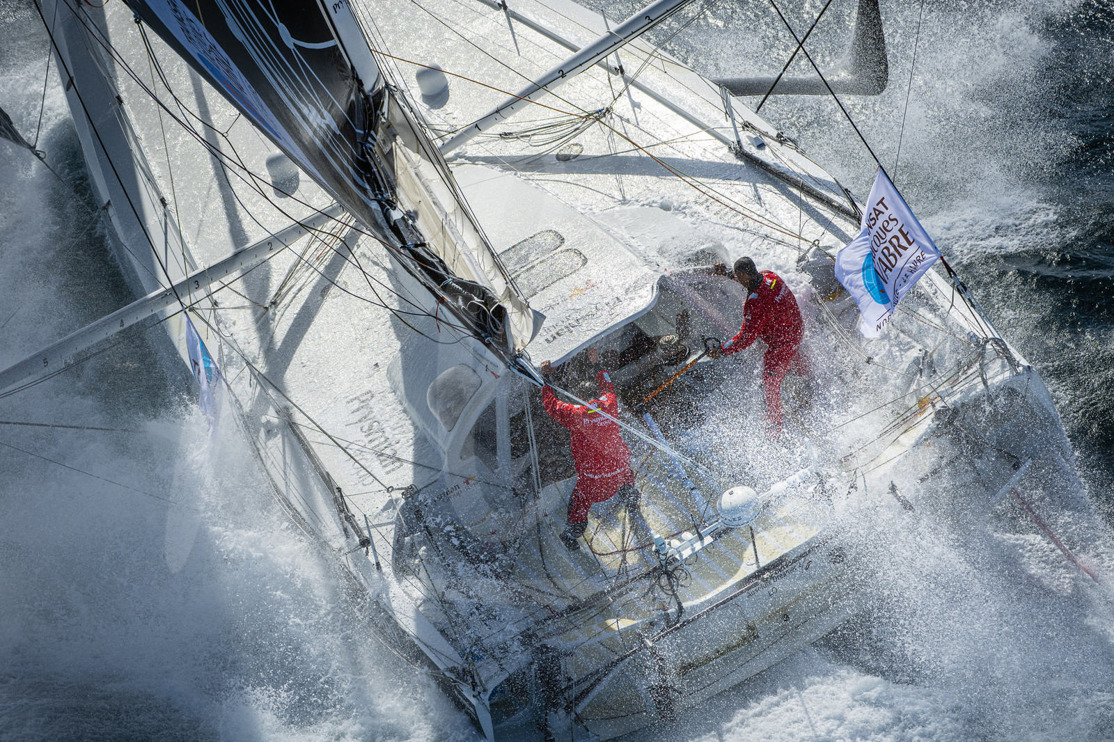 | Description | LORIENT, FRANCE - SEPTEMBER 27: Skippers Giancarlo Pedote and Martin Le Pape are training on the Imoca Prysmian Group, prior to the Transat Jacques Vabre, sailing race in duo from Le Havre to Fort de France, on September 27, 2021 off Lorient, France. (Photo by Bernard Le Bars/ALeA) |
