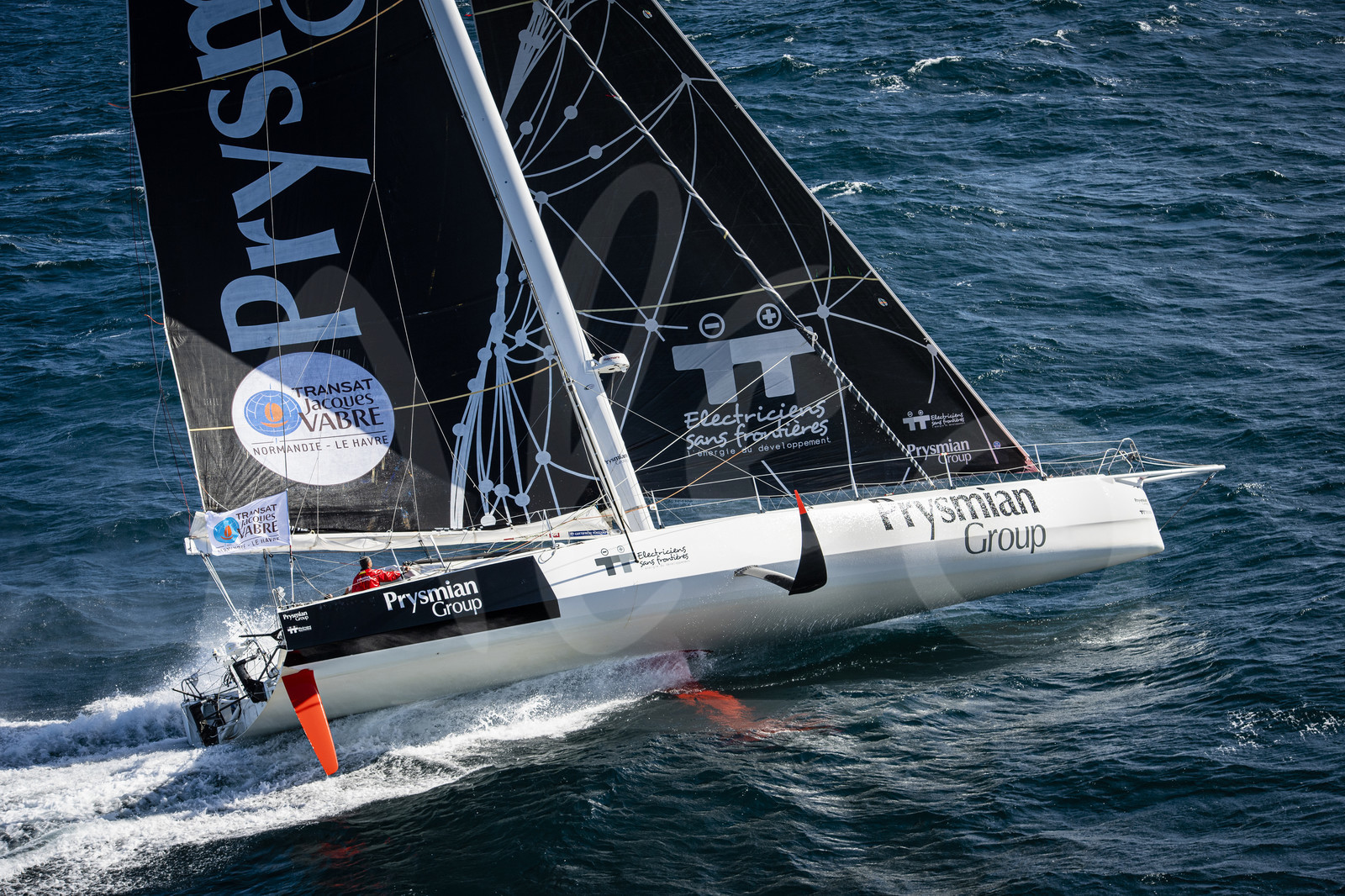 | Description | LORIENT, FRANCE - SEPTEMBER 27: Skippers Giancarlo Pedote and Martin Le Pape are training on the Imoca Prysmian Group, prior to the Transat Jacques Vabre, sailing race in duo from Le Havre to Fort de France, on September 27, 2021 off Lorient, France. (Photo by Bernard Le Bars/ALeA) |
