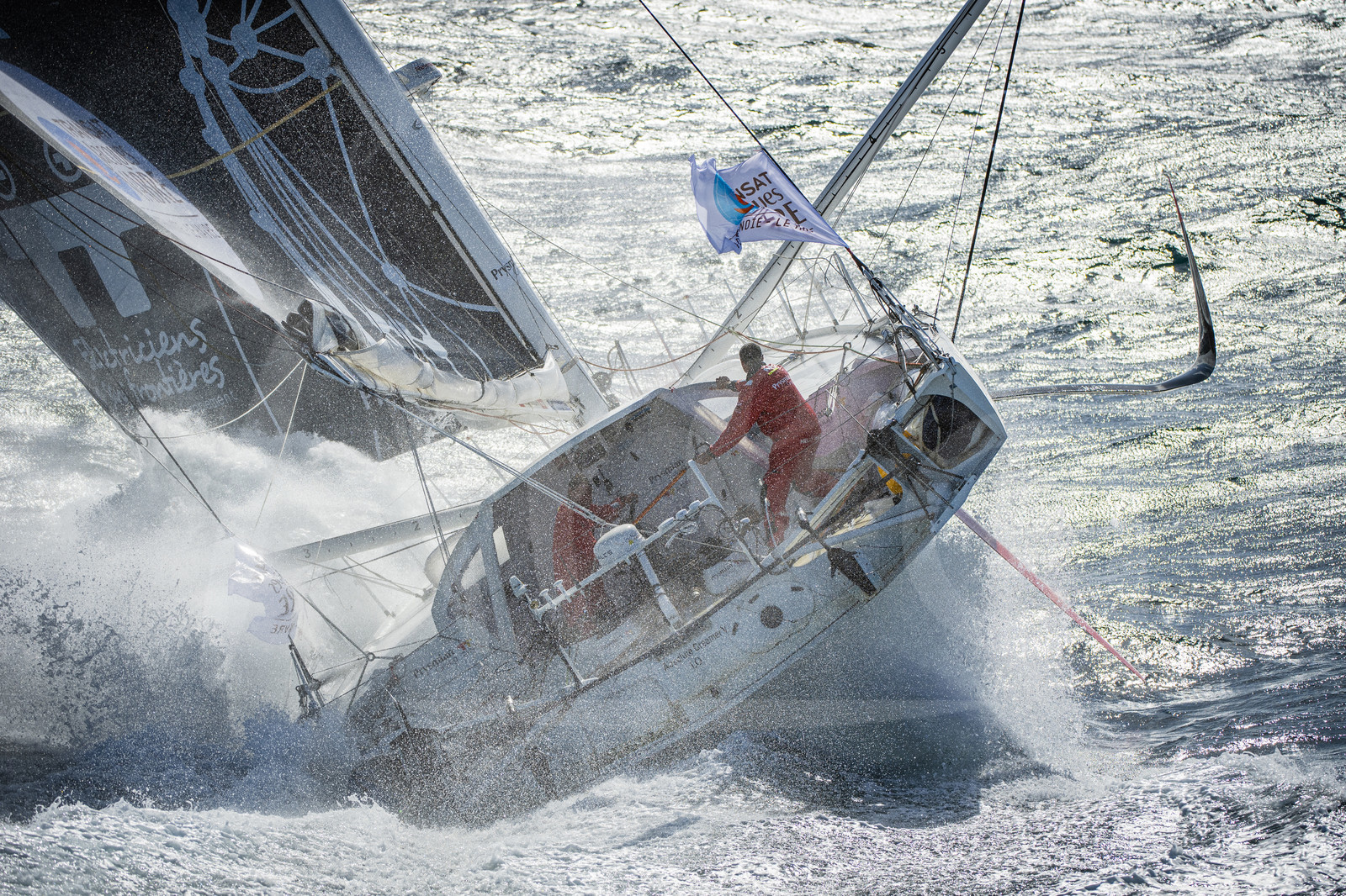| Description | LORIENT, FRANCE - SEPTEMBER 27: Skippers Giancarlo Pedote and Martin Le Pape are training on the Imoca Prysmian Group, prior to the Transat Jacques Vabre, sailing race in duo from Le Havre to Fort de France, on September 27, 2021 off Lorient, France. (Photo by Bernard Le Bars/ALeA) |