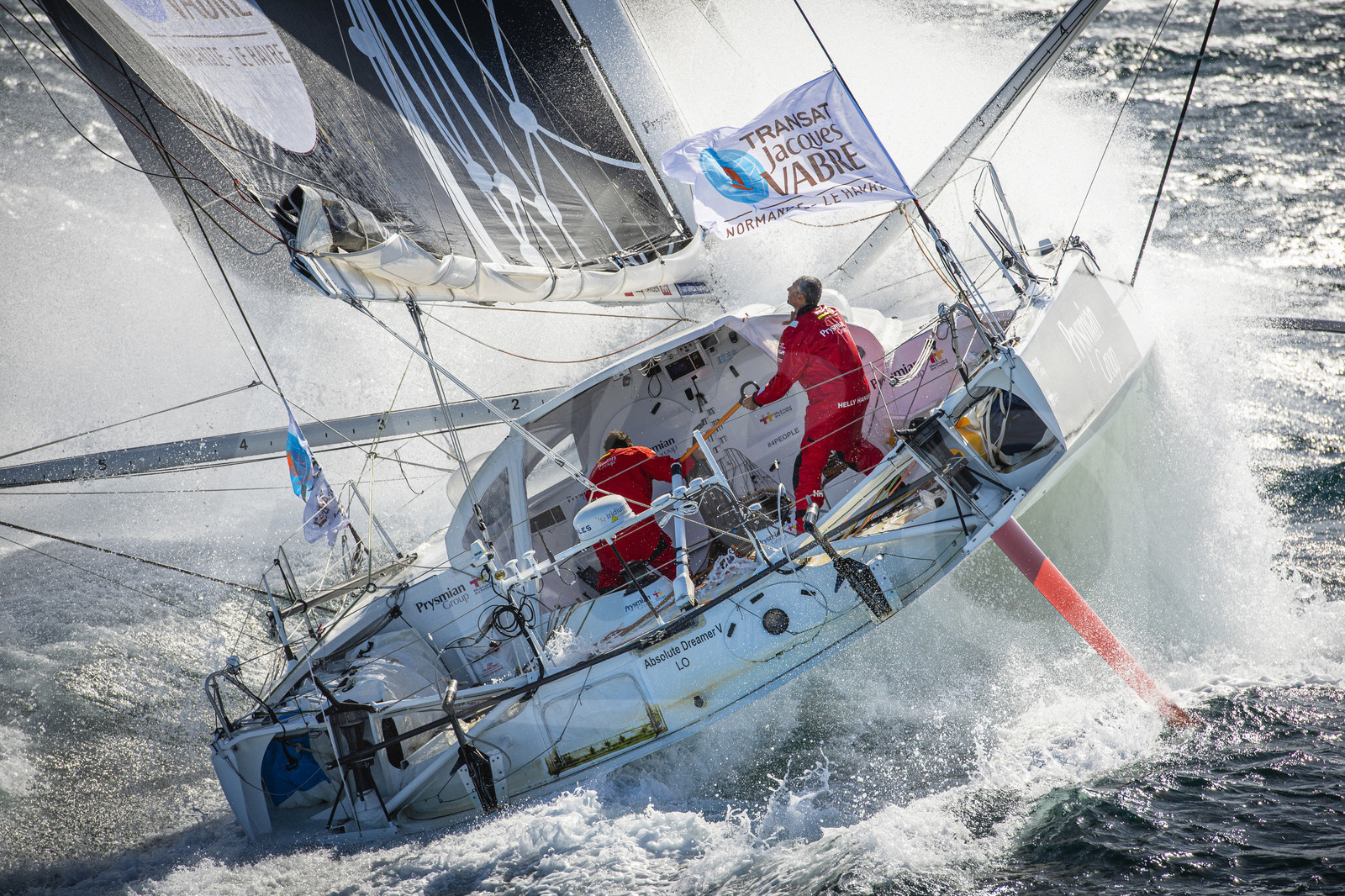 | Description | LORIENT, FRANCE - SEPTEMBER 27: Skippers Giancarlo Pedote and Martin Le Pape are training on the Imoca Prysmian Group, prior to the Transat Jacques Vabre, sailing race in duo from Le Havre to Fort de France, on September 27, 2021 off Lorient, France. (Photo by Bernard Le Bars/ALeA) |