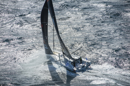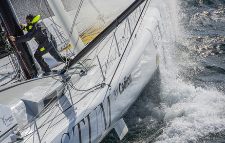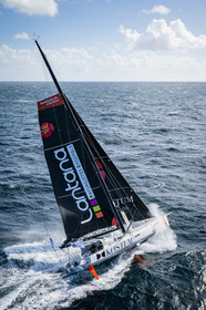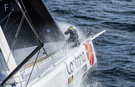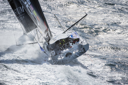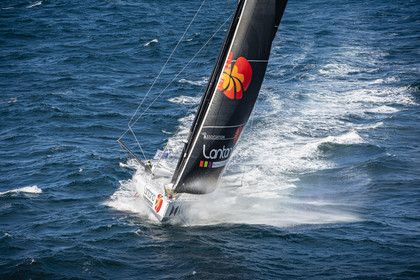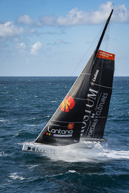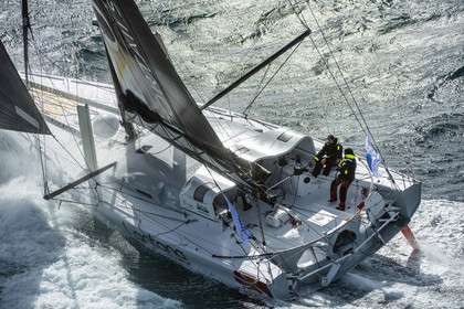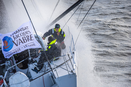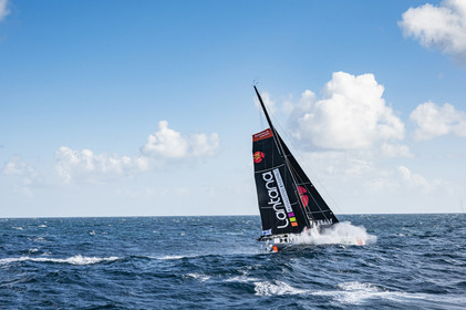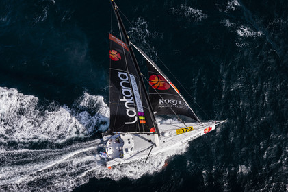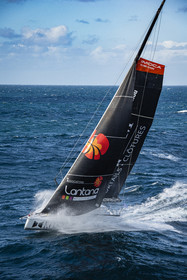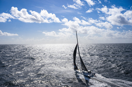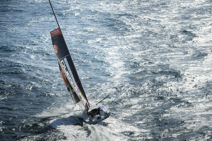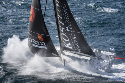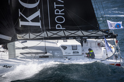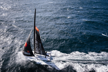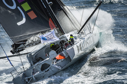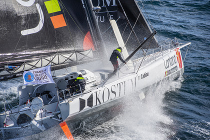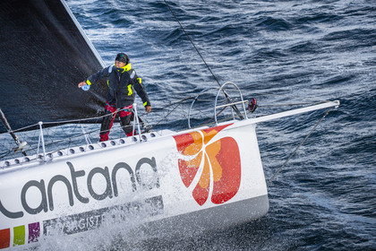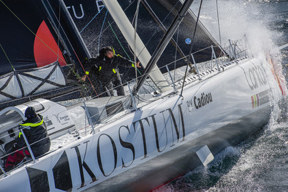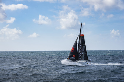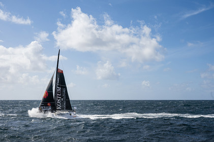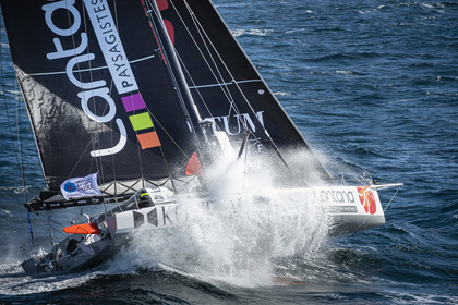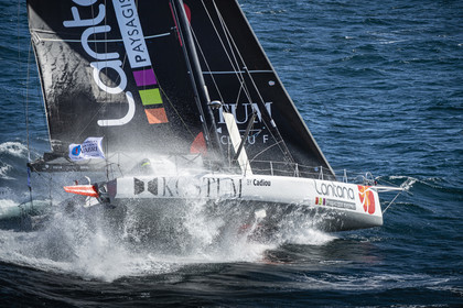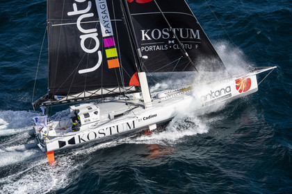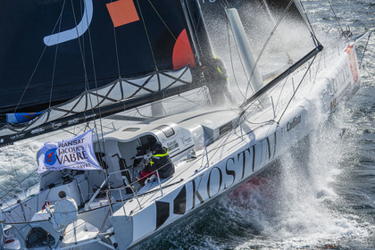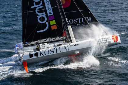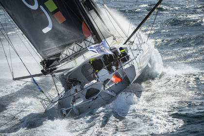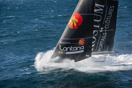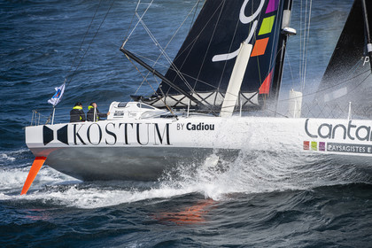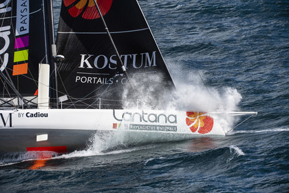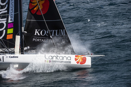 Sélection d'images de l'Imoca Kostum - Lantana Paysage (Louis Duc et Marie Tabarly) s'entrainant au large de Lorient le 27 Septembre 2021, en vue de la Transat Jacques Vabre 2021. La course partira le 7 Novembre du Havre, à destination de Fort de France.