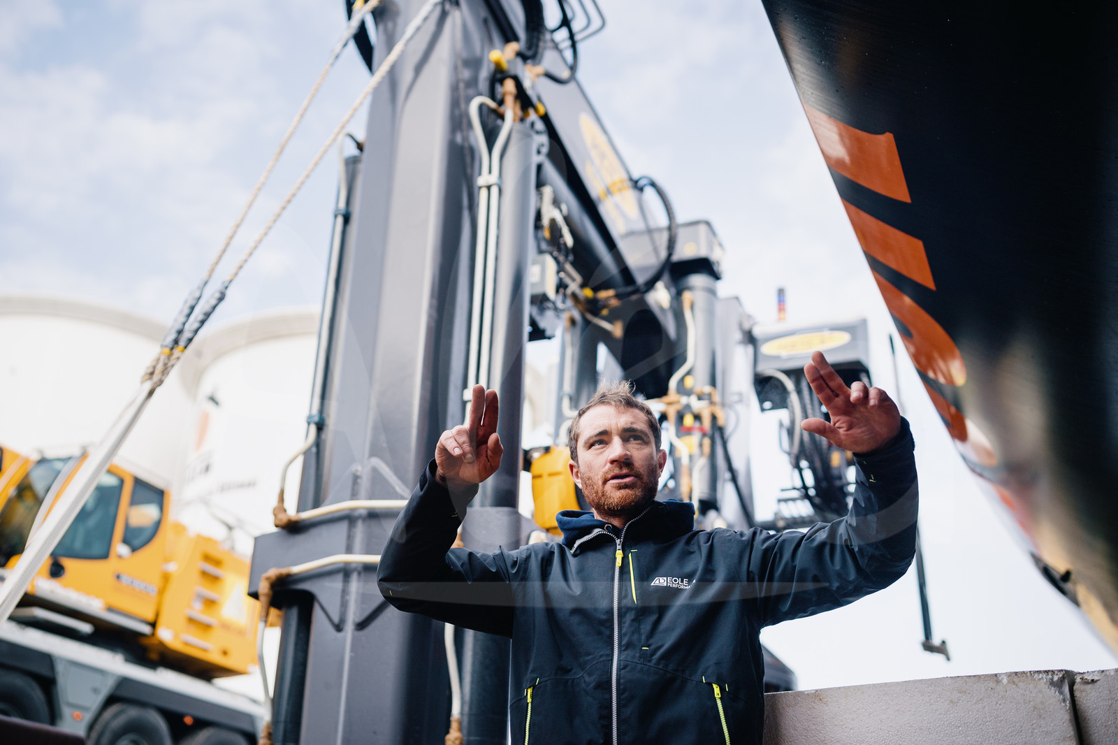| Description | LES SABLES D’OLONNE, FRANCE - FEBRUARY 10 : French skipper Benjamin Dutreux and his team Eole Performance are receiving their new Imoca boat, ex-11th Hour, for their Vendee Globe 2024 campaign, in Les Sables d’Olonne, on February 10th, 2022. (photo by Jean-Louis Carli / Alea) |