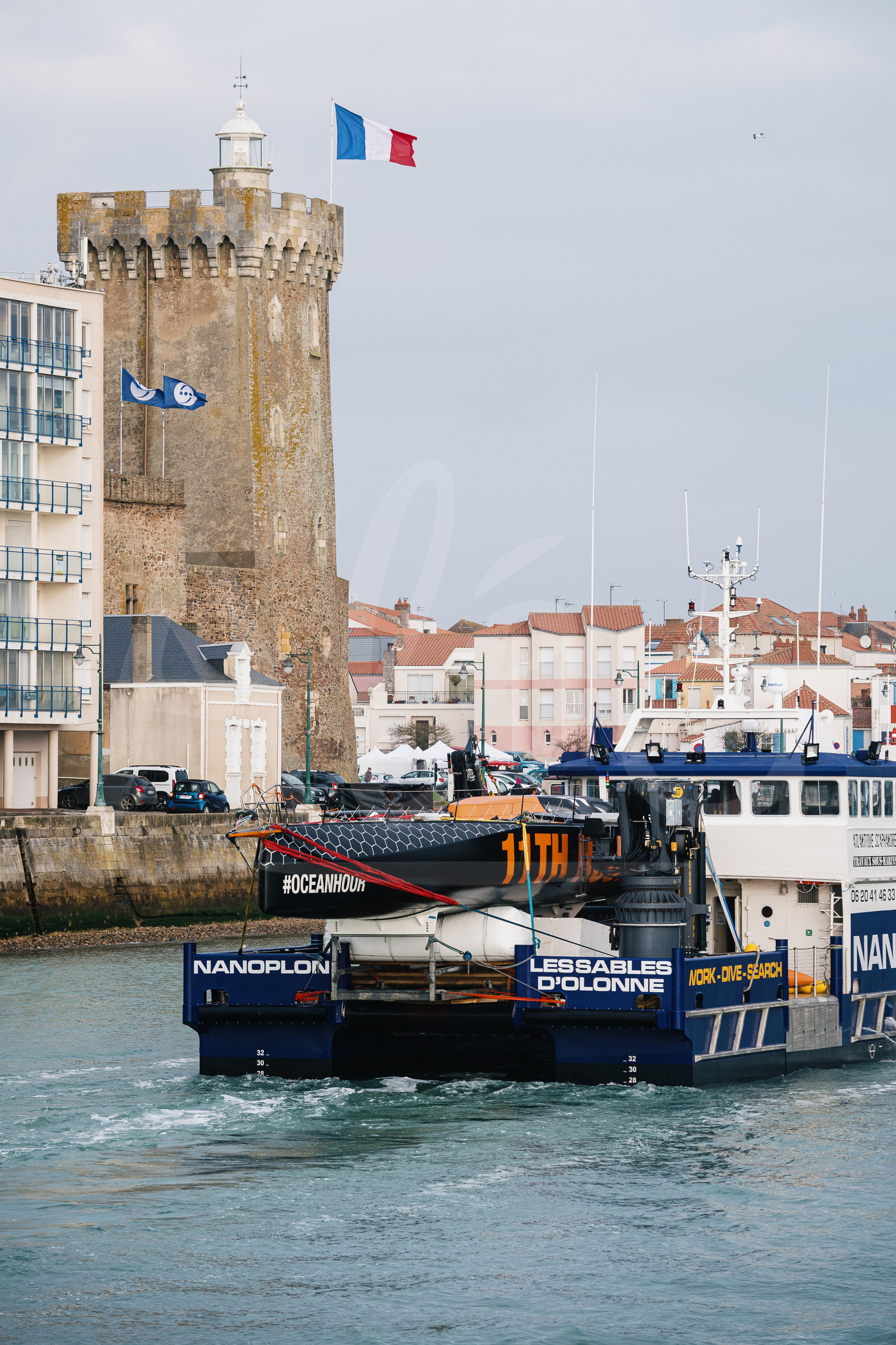 | Description | LES SABLES D’OLONNE, FRANCE - FEBRUARY 10 : French skipper Benjamin Dutreux and his team Eole Performance are receiving their new Imoca boat, ex-11th Hour, for their Vendee Globe 2024 campaign, in Les Sables d’Olonne, on February 10th, 2022. (photo by Jean-Louis Carli / Alea) |