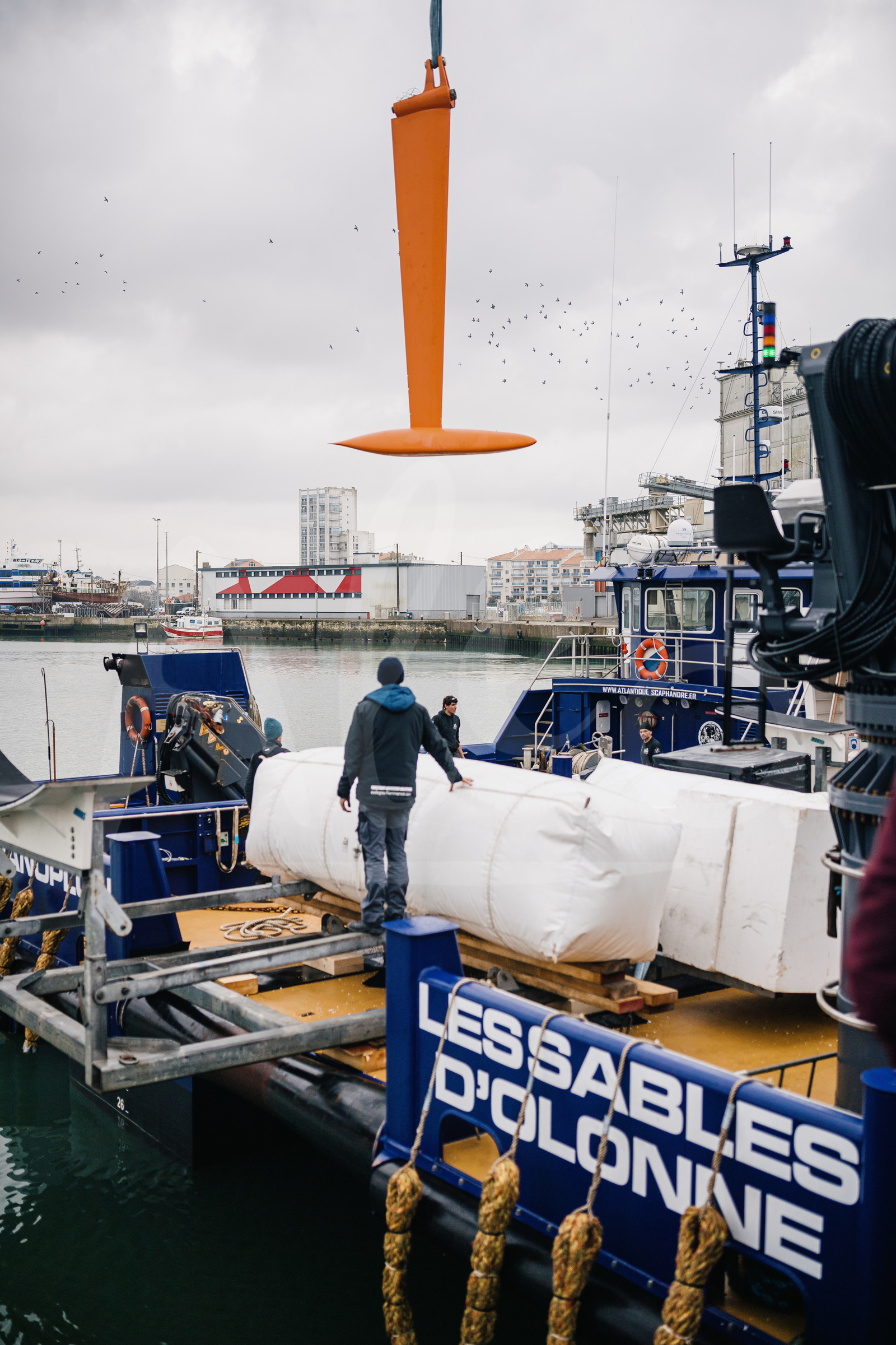 | Description | LES SABLES D’OLONNE, FRANCE - FEBRUARY 10 : French skipper Benjamin Dutreux and his team Eole Performance are receiving their new Imoca boat, ex-11th Hour, for their Vendee Globe 2024 campaign, in Les Sables d’Olonne, on February 10th, 2022. (photo by Jean-Louis Carli / Alea) |