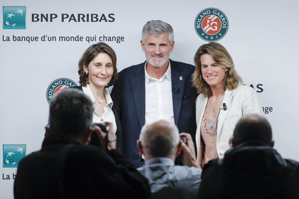 Sélection de portraits de Gilles Moretton, Amélie Mauresmo, Amélie Oudéa Castera et Sarah Pitkowski, pendant la conférence de presse de Roland Garros 2022, le 16 Mars 2022.