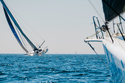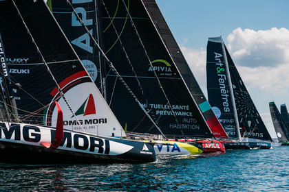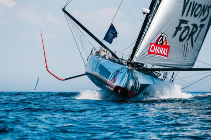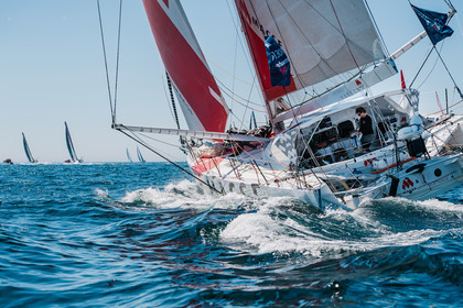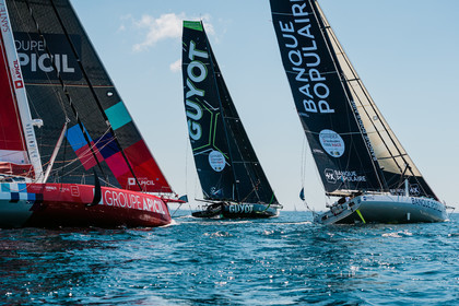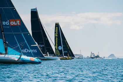 Sélection d'images de la course de voiliers IMOCA, Guyader Bermudes 1000 Race, au départ de Brest le 8 Mai 2022, avec retour à Brest.