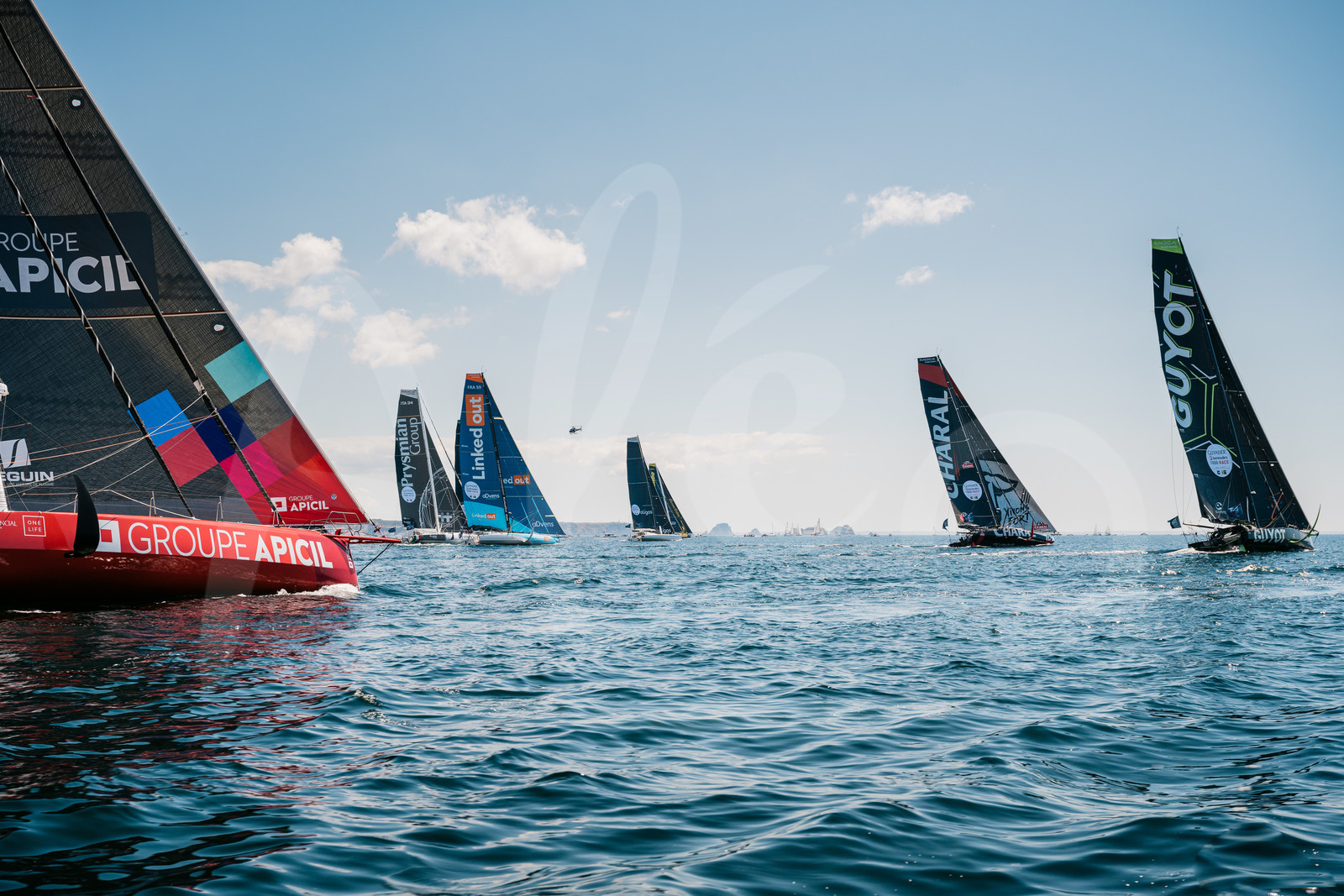 | Description | BREST, FRANCE - MAY 8 : The boats are illustrated during start of the Imoca Guyader Bermudes 1000 sailing race, in Brest, on May 8th, 2022. (photo by Jean-Louis Carli / Alea) |