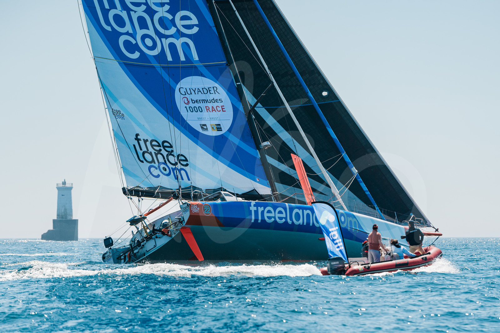 | Description | BREST, FRANCE - MAY 8 : FREELANCE.COM, Skipper Guirec Soudee, is illustrated during start of the Imoca Guyader Bermudes 1000 sailing race, in Brest, on May 8th, 2022. (photo by Jean-Louis Carli / Alea) |