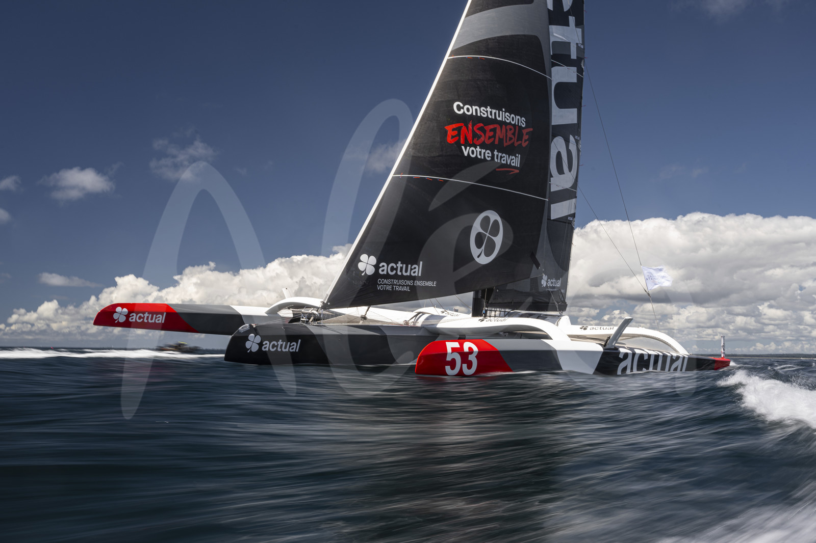| Description | CONCARNEAU, FRANCE - JULY 01: Ultim boat Actual Ultim 3 is taking start of the sailing race Finistere Atlantique, on July 1, 2022 in Concarneau, France. (Photo by Vincent Curutchet/Alea) |
