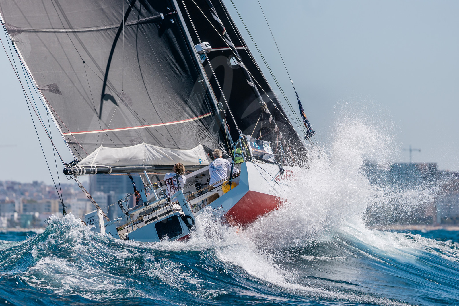 | Description | Le Class40 GRYPHON SOLO II des skippers Joe Harris et Roger Junet (USA/ITA) est photographié lors du grand départ de la première édition de la Globe40 à Tanger (Maroc), Etape Tanger Cap-Vert le 26 juin 2022 - © Jean-Marie LIOT / Alea |