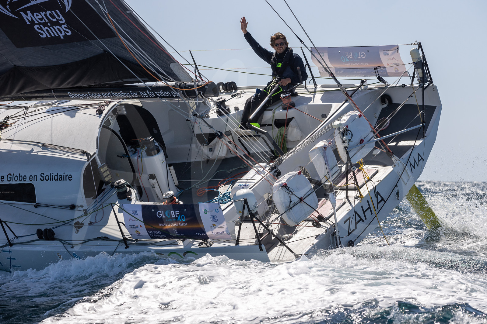 | Description | Le Class 40 THE GLOBE EN SOLIDAIRE des skippers Eric et Leo Grosclaude (FRA) est photographié lors du départ du prologue de la Globe40, course autour du monde en Class40, en double avec escales, entre Lorient et Tanger (Maroc), le 11 juin 2022 - © Jean-Marie LIOT / Alea |