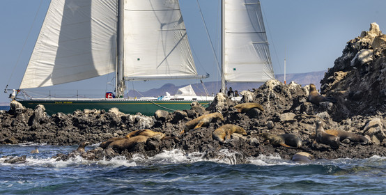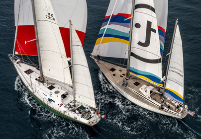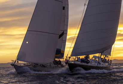 Le Swan 65 Translated_9 participera à l'Ocean Globe Race 2023 et rencontre ici le légendaire vainqueur de la Whitbread Around The World Race de 1973 "Sayula II" à La Paz, au Mexique, le 20 août 2022 - Photos de Carlo Borlenghi / Alea
