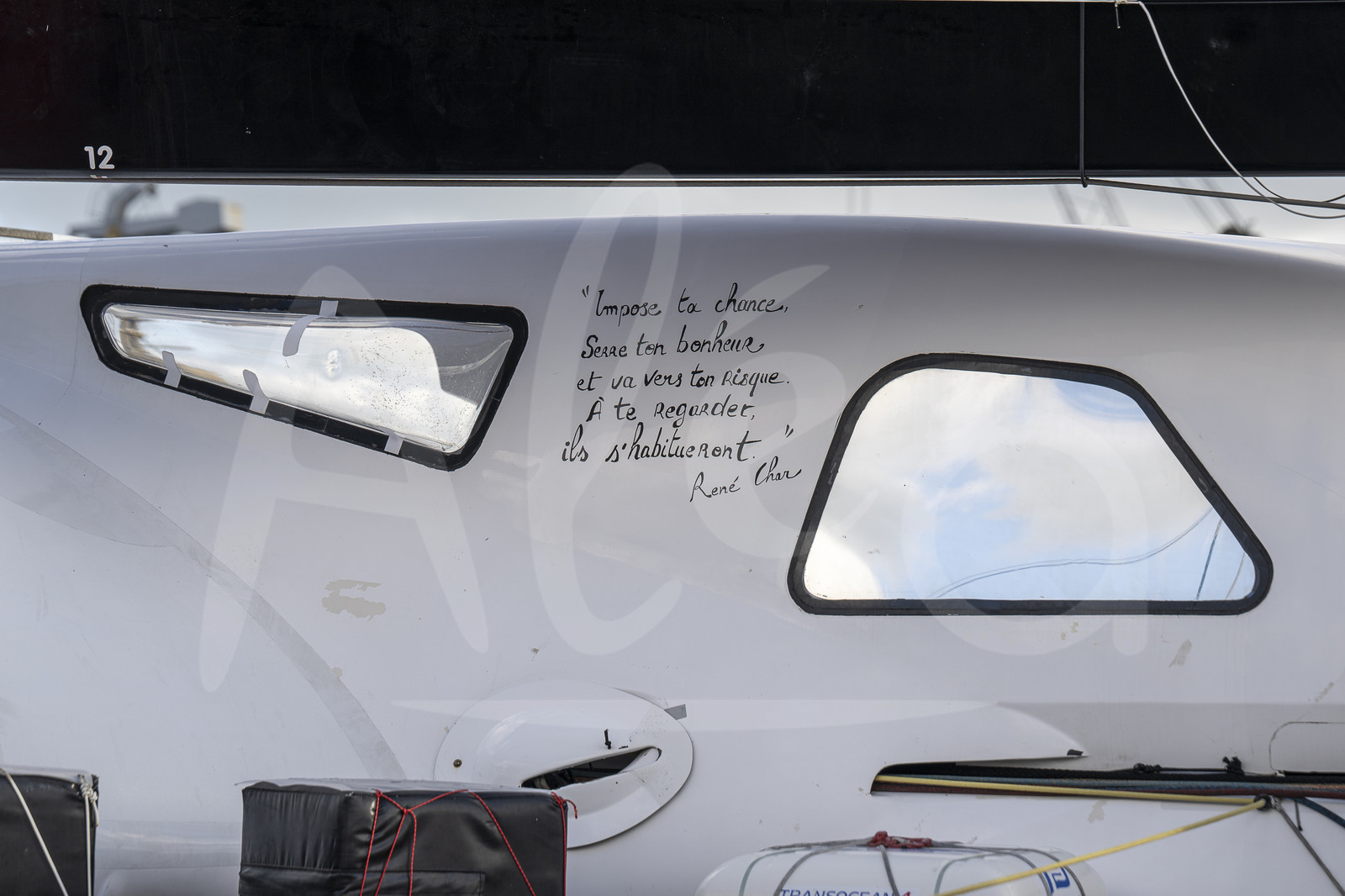 | Description | SAINT-MALO, FRANCE - NOVEMBER 4 : Mieux Ultim boat skipper Arthur le Vaillant has written a quote before start of the Route du Rhum Destination Guadeloupe, in Saint-Malo on November 4th, 2022 - (photo Olivier Blanchet / AleA) |