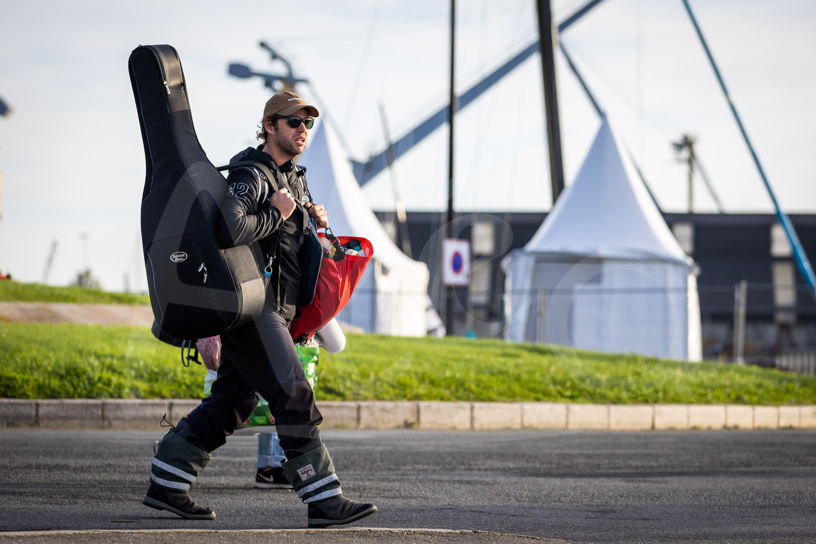 | Description | SAINT-MALO, FRANCE - NOVEMBRE 9 : Mieux, skipper Arthur Le Vaillant, is arriving with his guitar before start of La Route du Rhum - Destination Guadeloupe 2022 on November 9, 2022, in Saint-Malo, France. (photo Jean-Marie LIOT / AleA) |