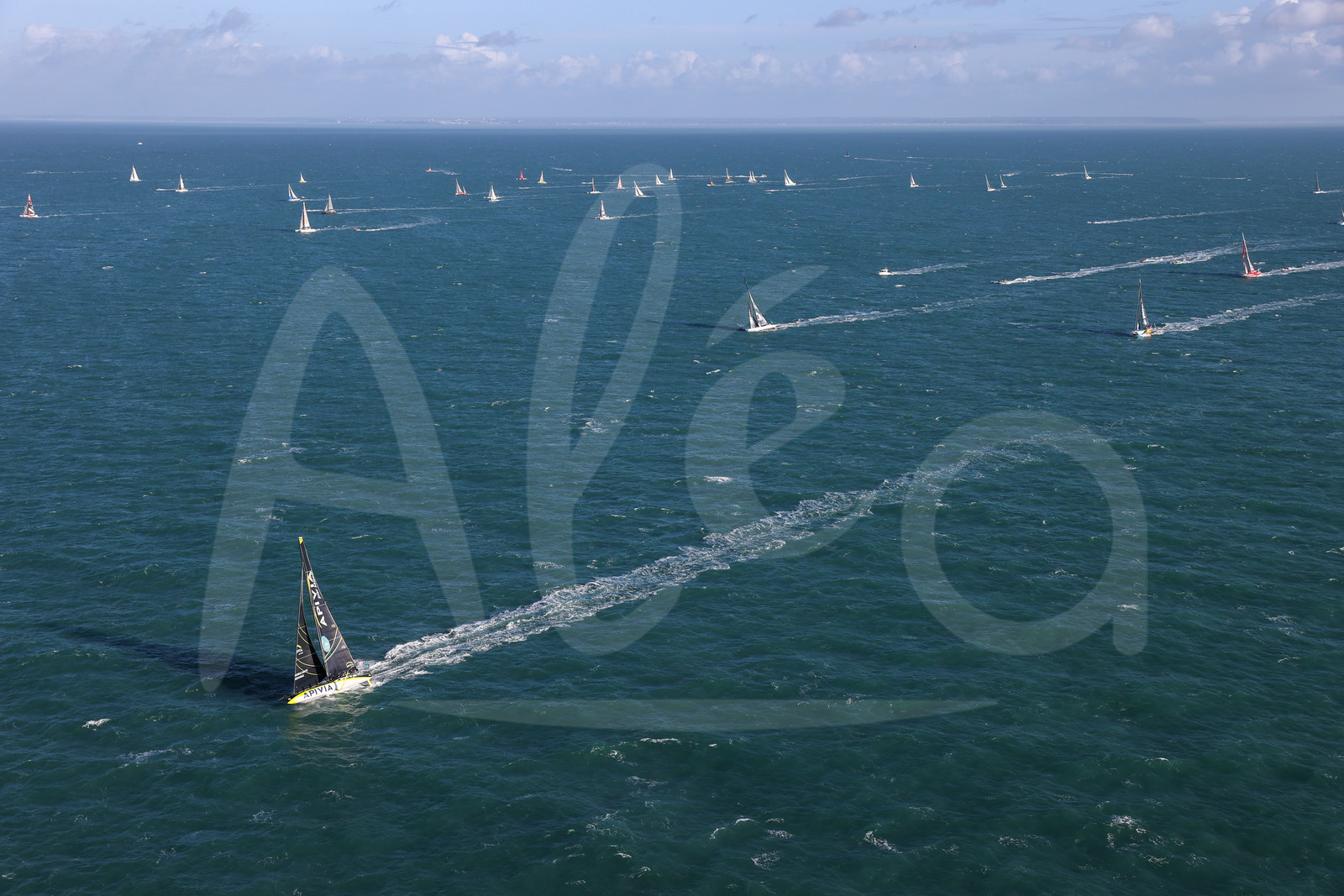 | Description | SAINT-MALO, FRANCE - NOVEMBRE 9 : Apivia, skipper Charlie Dalin (FRA) leads the fleet of Imoca Boats during start of La Route du Rhum - Destination Guadeloupe 2022 on November 9, 2022, in Saint-Malo, France. (photo Jean-Marie LIOT / AleA) |