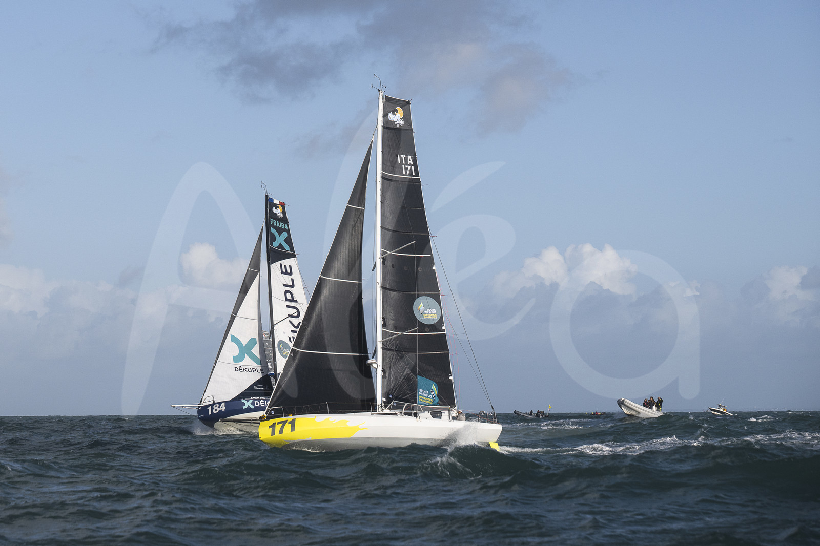 | Description | SAINT-MALO, FRANCE - NOVEMBRE 9 : Class 40 Influence, skipper Andrea Fornaro (ITA) is competing during start of La Route du Rhum - Destination Guadeloupe 2022 on November 9, 2022, in Saint-Malo, France. (photo Olivier Blanchet / AleA) |