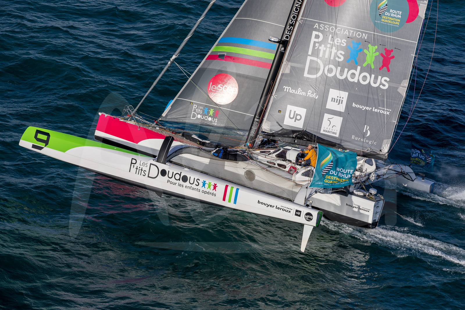 | Description | SAINT-MALO, FRANCE - NOVEMBRE 9 : Ocean Fifty Les P’tits Doudous, skipper Armel Tripon, is competing during start of La Route du Rhum - Destination Guadeloupe 2022 on November 9, 2022, in Saint-Malo, France. (photo Jean-Marie LIOT / AleA) |
