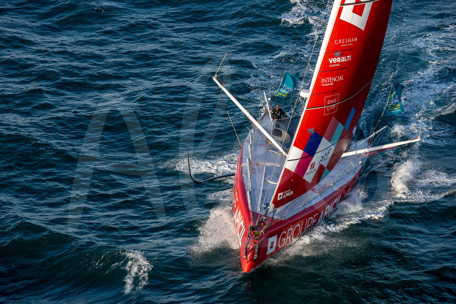 DescriptionSAINT-MALO, FRANCE - NOVEMBRE 9 : Imoca fleet is illustrated during start of La Route du Rhum - Destination Guadeloupe 2022 on November 9, 2022, in Saint-Malo, France. (photo Jean-Marie LIOT / AleA)