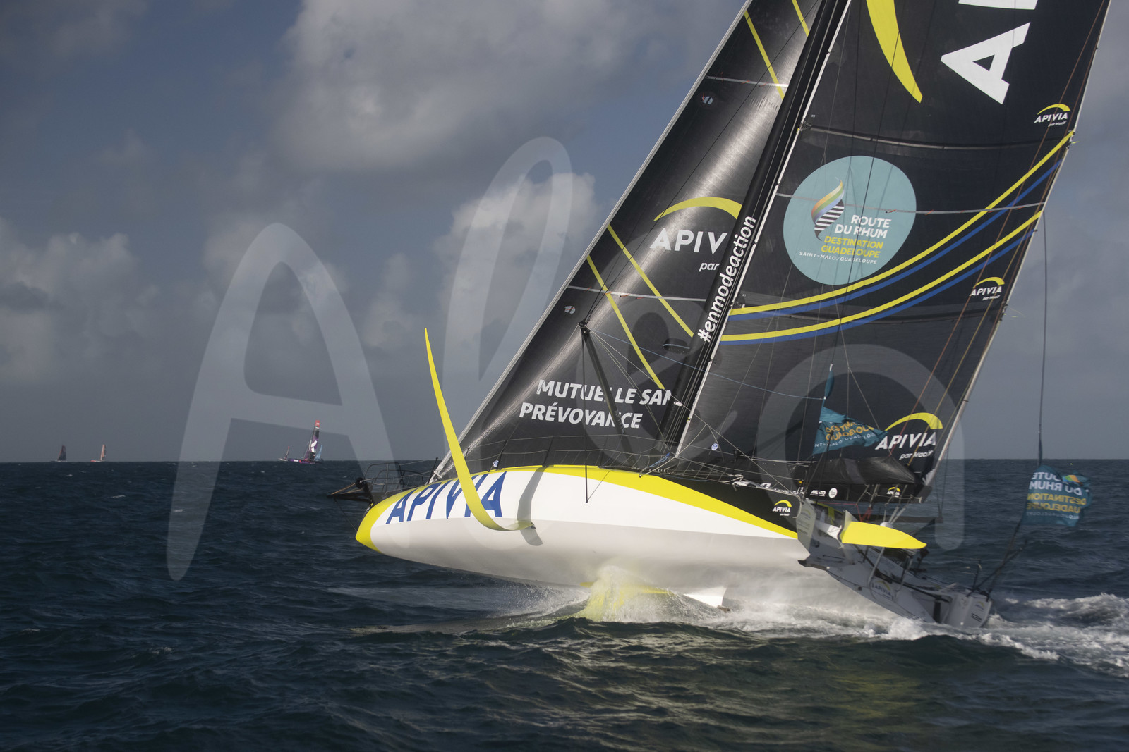 | Description | SAINT-MALO, FRANCE - NOVEMBRE 9 : Imoca Apivia, skipper Charlie Dalin (FRA) is competing during start of La Route du Rhum - Destination Guadeloupe 2022 on November 9, 2022, in Saint-Malo, France. (photo Vincent Curutchet / AleA) |