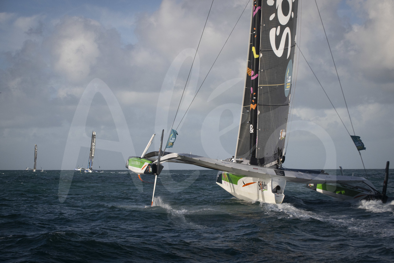 | Description | SAINT-MALO, FRANCE - NOVEMBRE 9 : Sodebo Ultim 3, skipper Thomas Coville, is competing during start of La Route du Rhum - Destination Guadeloupe 2022 on November 9, 2022, in Saint-Malo, France. (photo Vincent Curutchet / AleA) |