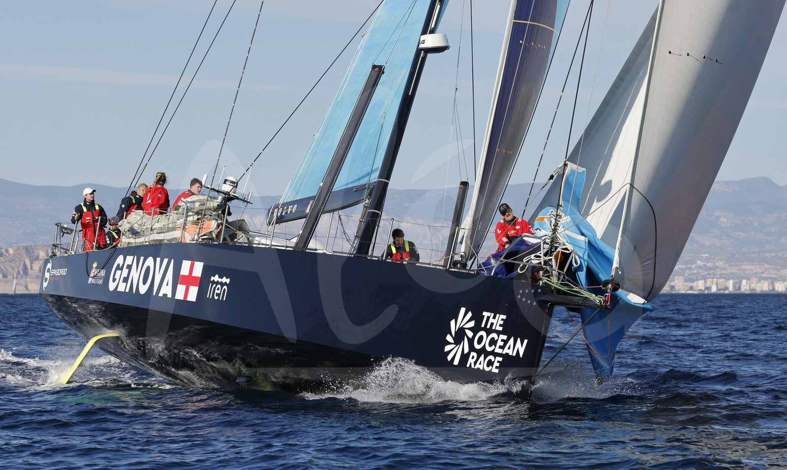 | Description | ALICANTE, SPAIN - JANUARY 15 : VO65 competitor Austrian Ocean Racing powered by Team Genova is illustrated in action during start of The Ocean Race, sailing crew competition in Imoca or VO65, in Alicante, Spain, on January 15, 2023 - (photo Carlo Borlenghi / AleA) |