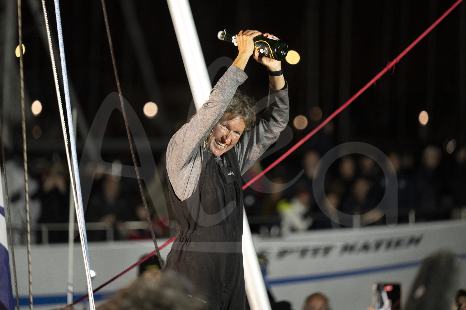 | Description | LES SABLES D’OLONNE, FRANCE - APRIL 27: South African skipper Kirsten Neuschäfer celebrates winning the round the world solo sailing race without any assistance, or electronics, on April 27, 2023 in Les Sables d’Olonne, France. (Photo by Olivier Blanchet/ALeA) |