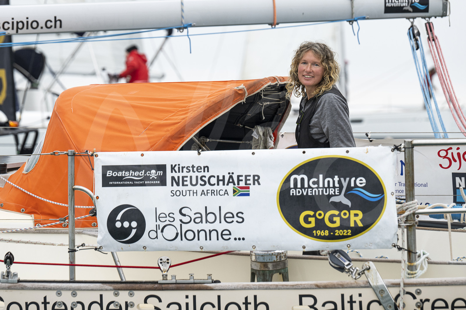 | Description | LES SABLES D’OLONNE, FRANCE - APRIL 27: South African skipper Kirsten Neuschäfer wins the round the world solo sailing race without any assistance, or electronics, on April 27, 2023 in Les Sables d’Olonne, France. (Photo by Olivier Blanchet/ALeA) |