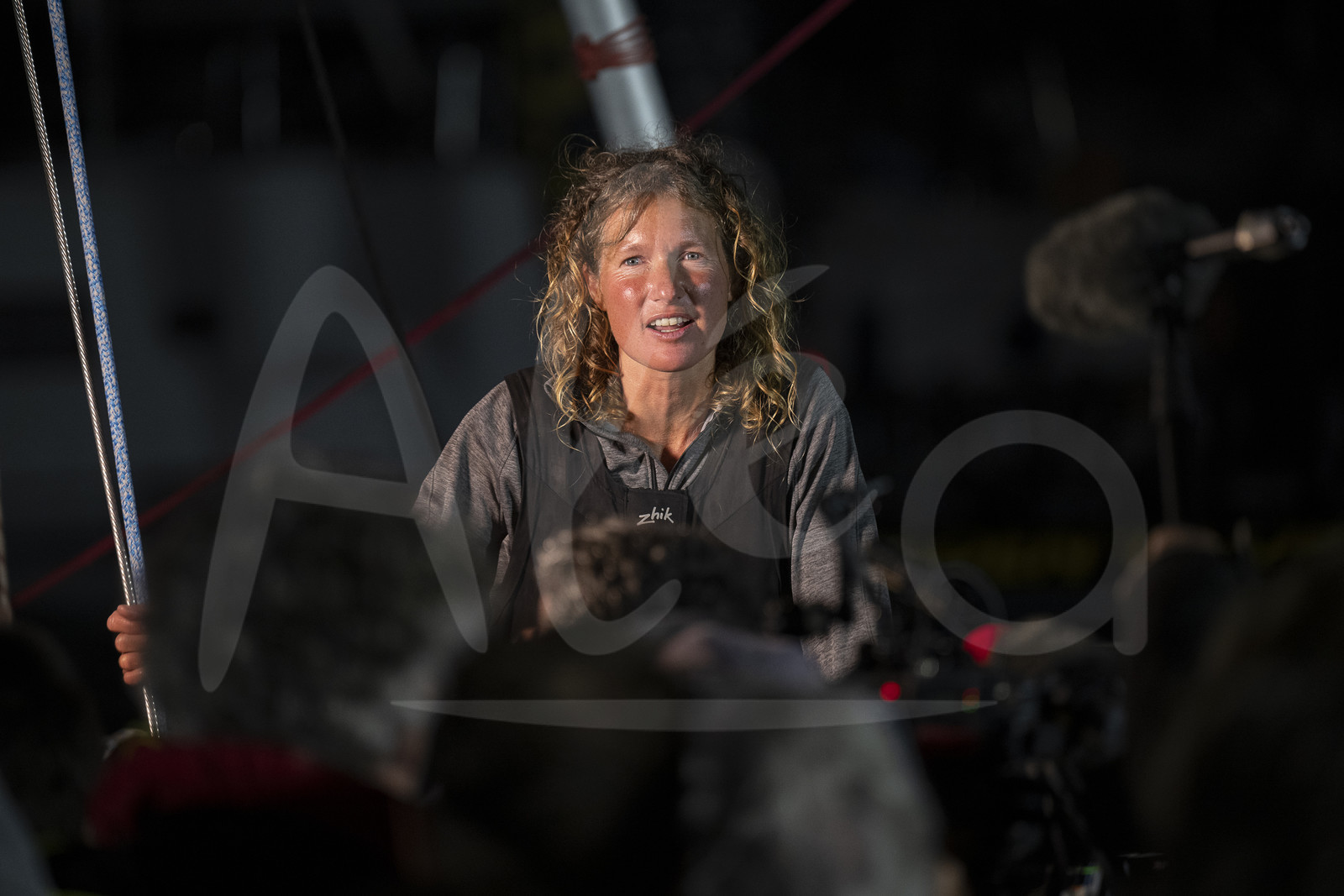 | Description | LES SABLES D’OLONNE, FRANCE - APRIL 27: South African skipper Kirsten Neuschäfer wins the round the world solo sailing race without any assistance, or electronics, on April 27, 2023 in Les Sables d’Olonne, France. (Photo by Olivier Blanchet/ALeA) |