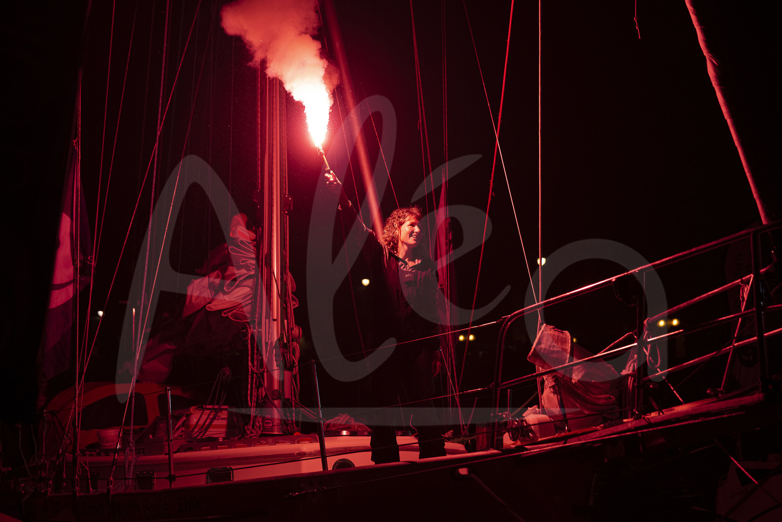 | Description | LES SABLES D’OLONNE, FRANCE - APRIL 27: South African skipper Kirsten Neuschäfer celebrates with flares winning the round the world solo sailing race without any assistance, or electronics, on April 27, 2023 in Les Sables d’Olonne, France. (Photo by Olivier Blanchet/ALeA) |