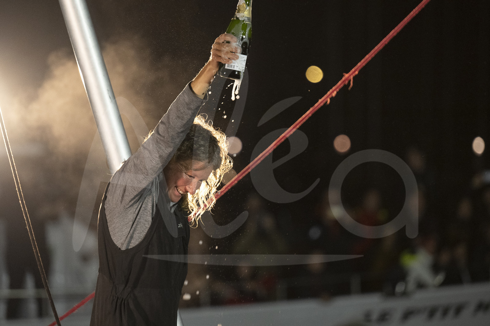 | Description | LES SABLES D’OLONNE, FRANCE - APRIL 27: South African skipper Kirsten Neuschäfer celebrates winning the round the world solo sailing race without any assistance, or electronics, on April 27, 2023 in Les Sables d’Olonne, France. (Photo by Olivier Blanchet/ALeA) |