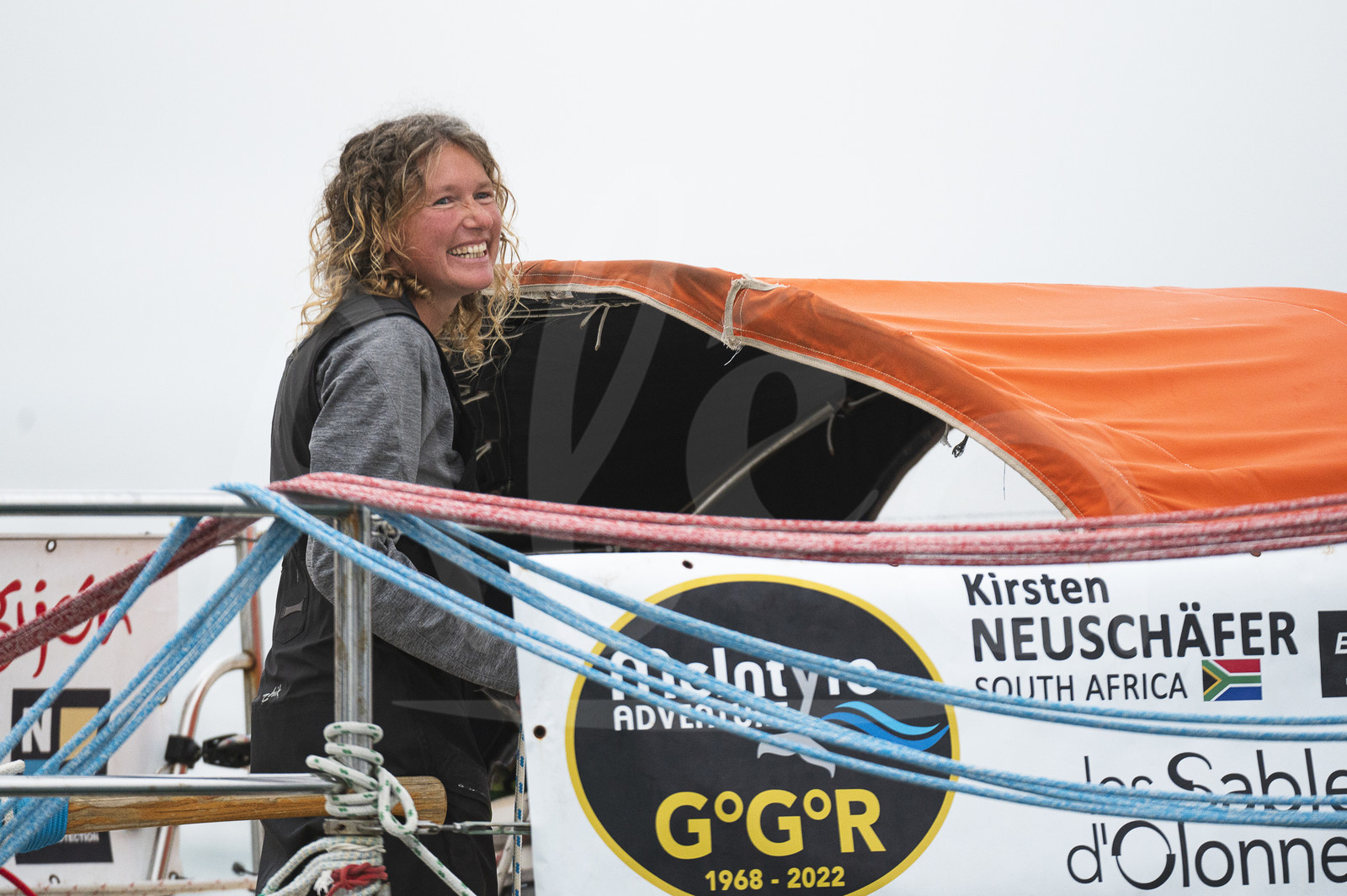 | Description | LES SABLES D’OLONNE, FRANCE - APRIL 27: South African skipper Kirsten Neuschäfer wins the round the world solo sailing race without any assistance, or electronics, on April 27, 2023 in Les Sables d’Olonne, France. (Photo by Olivier Blanchet/ALeA) |