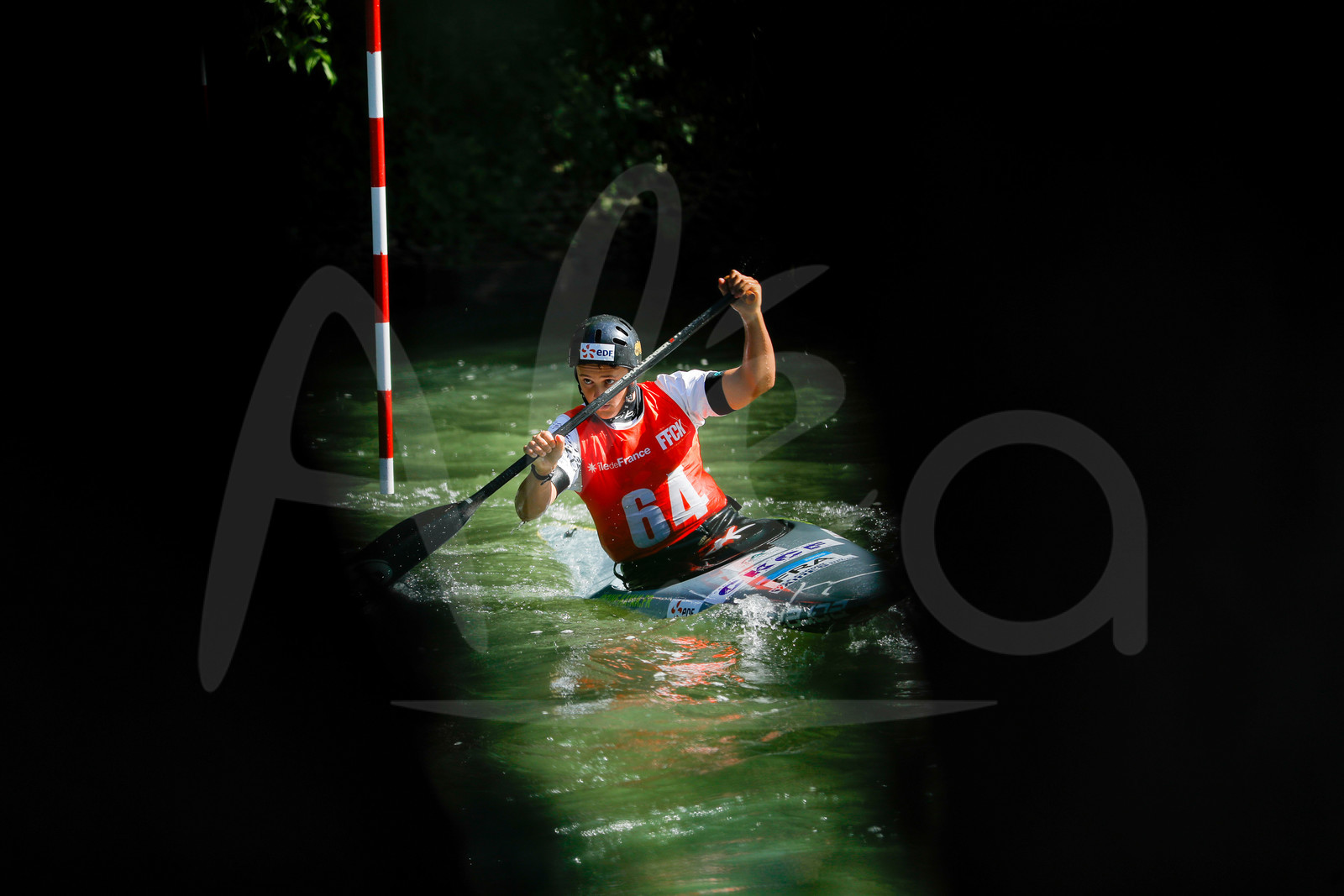 | Description | CHAMPS SUR MARNE, FRANCE - Juin 25, 2023 : Matheo Senechault du CK Club France, est photographié en action lors du championnat régional de canoë-kayak de Champs Sur Marne, le 25 juin 2023. (photo by Stéphane Allaman / Alea) |