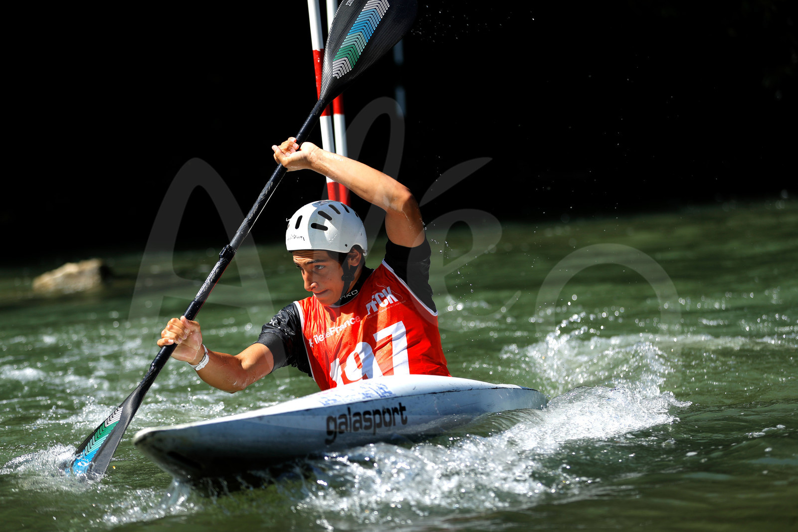 | Description | CHAMPS SUR MARNE, FRANCE - Juin 25, 2023 : Cyrian Menuat du CK Club de Mehun, est photographié en action lors du championnat régional de canoë-kayak de Champs Sur Marne, le 25 juin 2023. (photo by Stéphane Allaman / Alea) |