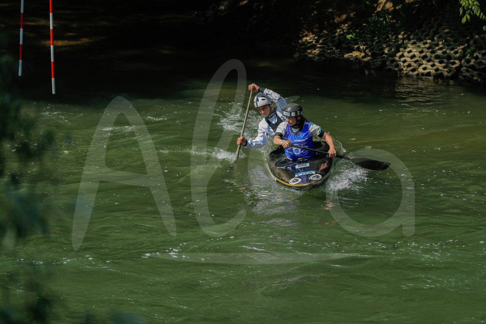 | Description | CHAMPS SUR MARNE, FRANCE - Juin 25, 2023 : Jo Rivrin Delfosse et Irene Combes du CK Club France, est photographié en action lors du championnat régional de canoë-kayak de Champs Sur Marne, le 25 juin 2023. (photo by Stéphane Allaman / Alea) |