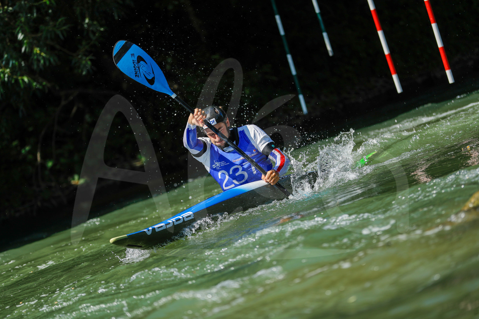 | Description | CHAMPS SUR MARNE, FRANCE - Juin 25, 2023 : Yohann Senechault du CK Club France, est photographié en action lors du championnat régional de canoë-kayak de Champs Sur Marne, le 25 juin 2023. (photo by Stéphane Allaman / Alea) |