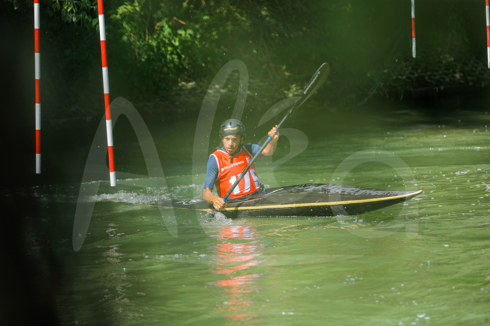 | Description | CHAMPS SUR MARNE, FRANCE - Juin 25, 2023 : Ilyes Chaabi du Torcy CK, est photographié en action lors du championnat régional de canoë-kayak de Champs Sur Marne, le 25 juin 2023. (photo by Stéphane Allaman / Alea) |