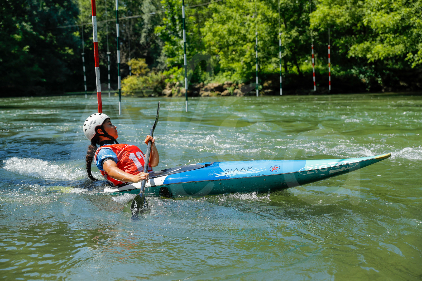 | Description | CHAMPS SUR MARNE, FRANCE - Juin 25, 2023 : Lina Belhaddad du Red Star Club Champigny, est photographié en action lors du championnat régional de canoë-kayak de Champs Sur Marne, le 25 juin 2023. (photo by Stéphane Allaman / Alea) |