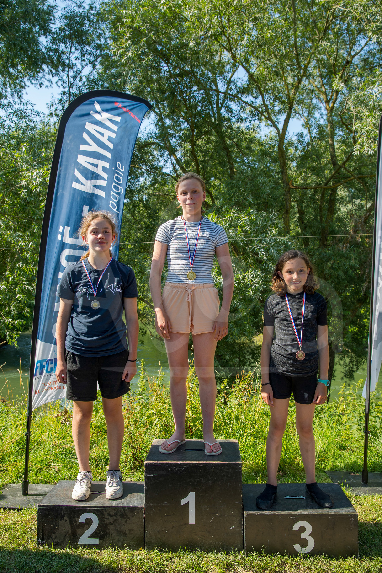 | Description | CHAMPS SUR MARNE, FRANCE - Juin 25, 2023 : Les podiums sont photographiés lors du championnat régional de canoë-kayak de Champs Sur Marne, le 25 juin 2023. (photo by Stéphane Allaman / Alea) |