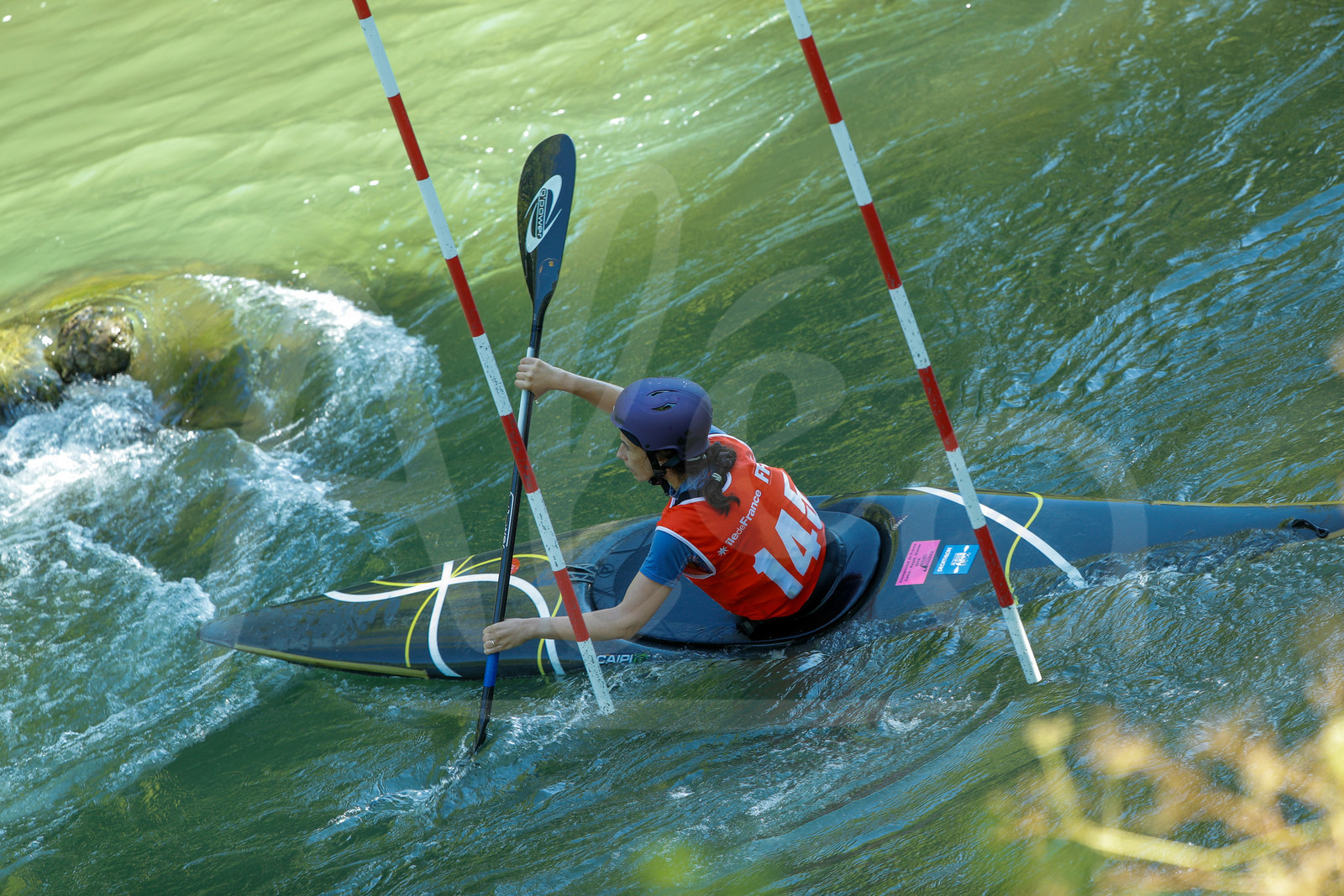DescriptionCHAMPS SUR MARNE, FRANCE - Juin 25, 2023 : Elodie Thomasset de l’Orthez Nautique CK, est photographié en action lors du championnat régional de canoë-kayak de Champs Sur Marne, le 25 juin 2023. (photo by Stéphane Allaman / Alea)