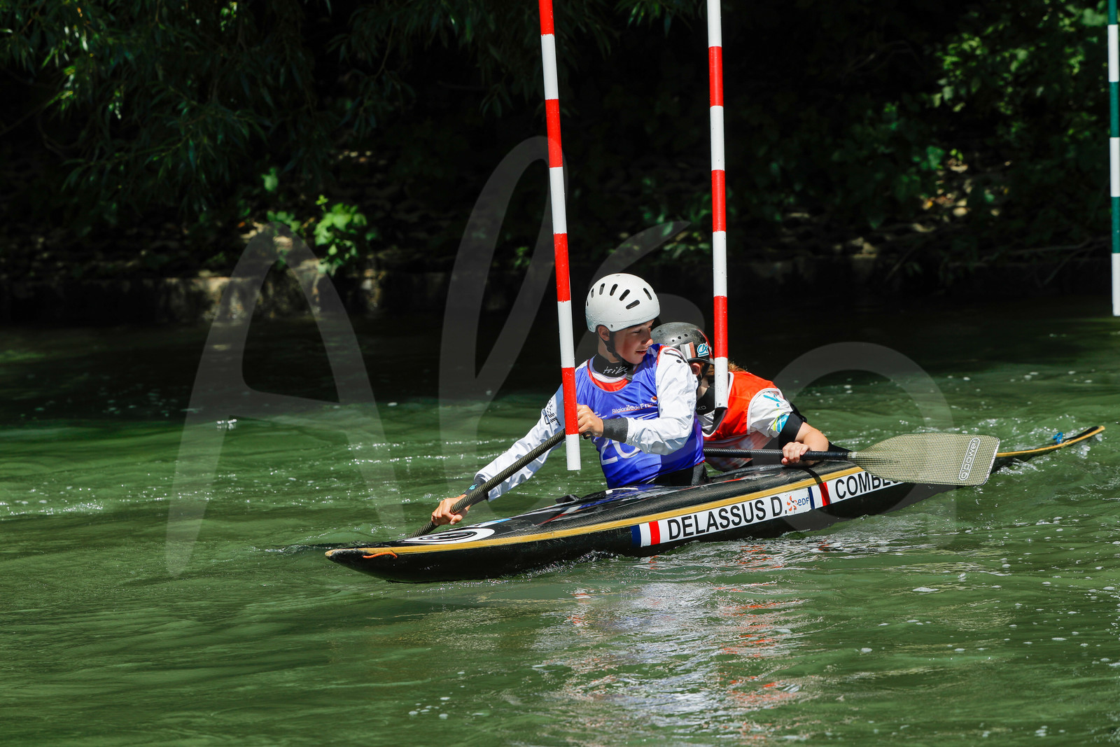 | Description | CHAMPS SUR MARNE, FRANCE - Juin 25, 2023 : Jo Rivrin Delfosse et Irene Combes du CK Club France, est photographié en action lors du championnat régional de canoë-kayak de Champs Sur Marne, le 25 juin 2023. (photo by Stéphane Allaman / Alea) |