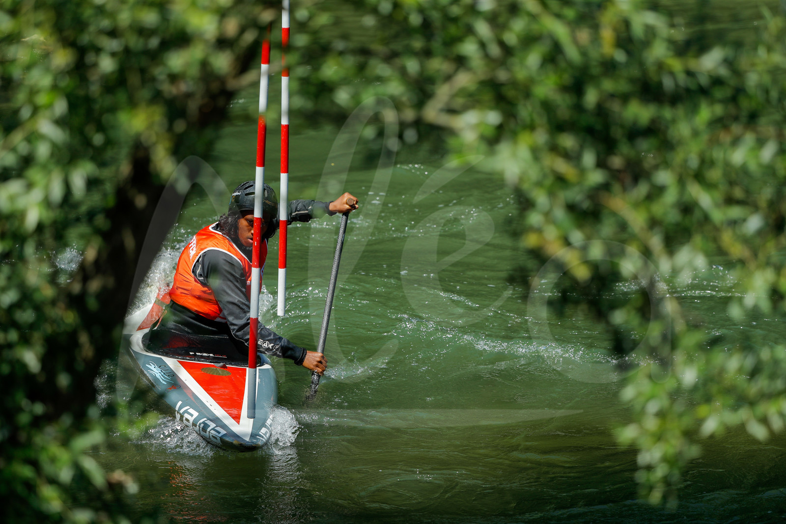 | Description | CHAMPS SUR MARNE, FRANCE - Juin 25, 2023 : Kavishan Kulatunga du Red Star Club Champigny, est photographié en action lors du championnat régional de canoë-kayak de Champs Sur Marne, le 25 juin 2023. (photo by Stéphane Allaman / Alea) |