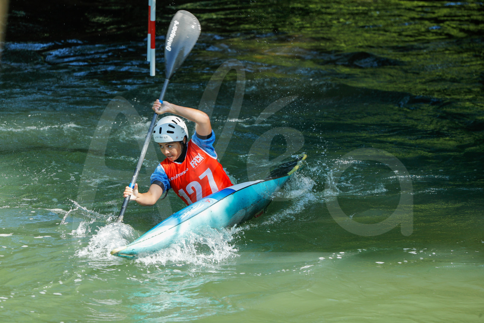| Description | CHAMPS SUR MARNE, FRANCE - Juin 25, 2023 : Lina Belhaddad du Red Star Club Champigny, est photographié en action lors du championnat régional de canoë-kayak de Champs Sur Marne, le 25 juin 2023. (photo by Stéphane Allaman / Alea) |