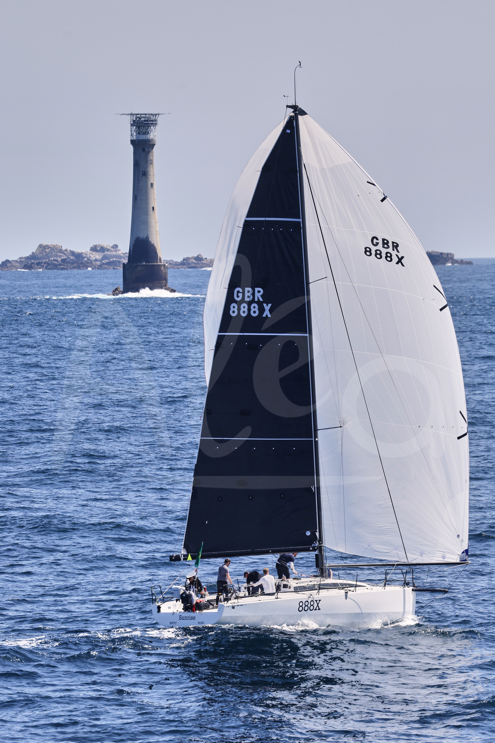 | Description | SUNRISE III, Skipper: Tom Kneen, Class: IRC 1, Sail No: GBR888X, LOA: "11, 79", Design: JPK 11.80, County/State: UK is captured in action during the Fastnet Race 2023 from Cowes to Cherbourg, on July 25, 2023. Photo by Carlo Borlenghi / Alea |