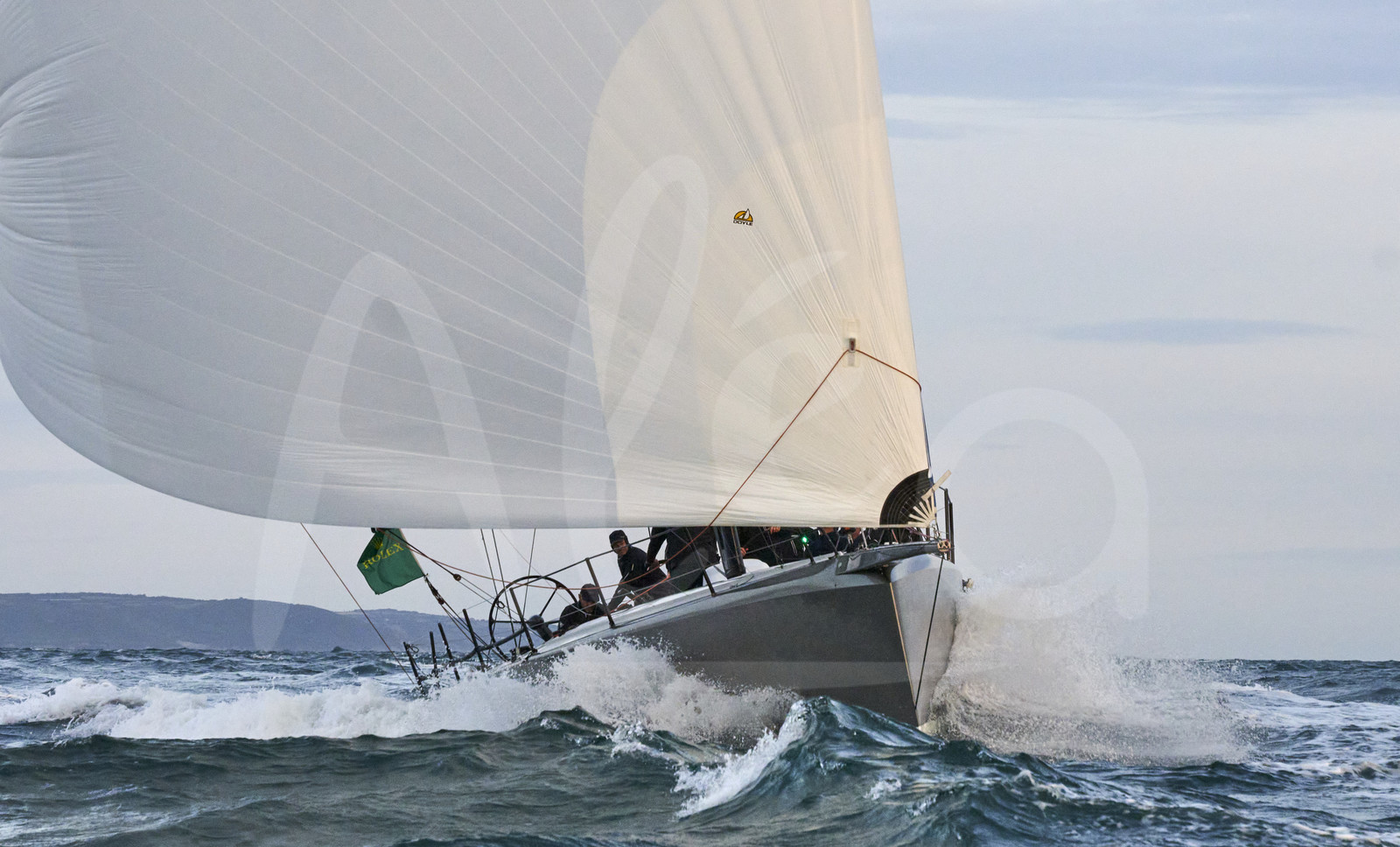| Description | CARO, Skipper: Max Klink, Class: IRC Zero, Sail No: CAY52, LOA: "15, 85", Design: Botin 52, County/State: SWITZERLAND is captured in action during the Fastnet Race 2023 from Cowes to Cherbourg, on July 25, 2023. Photo by Carlo Borlenghi / Alea |