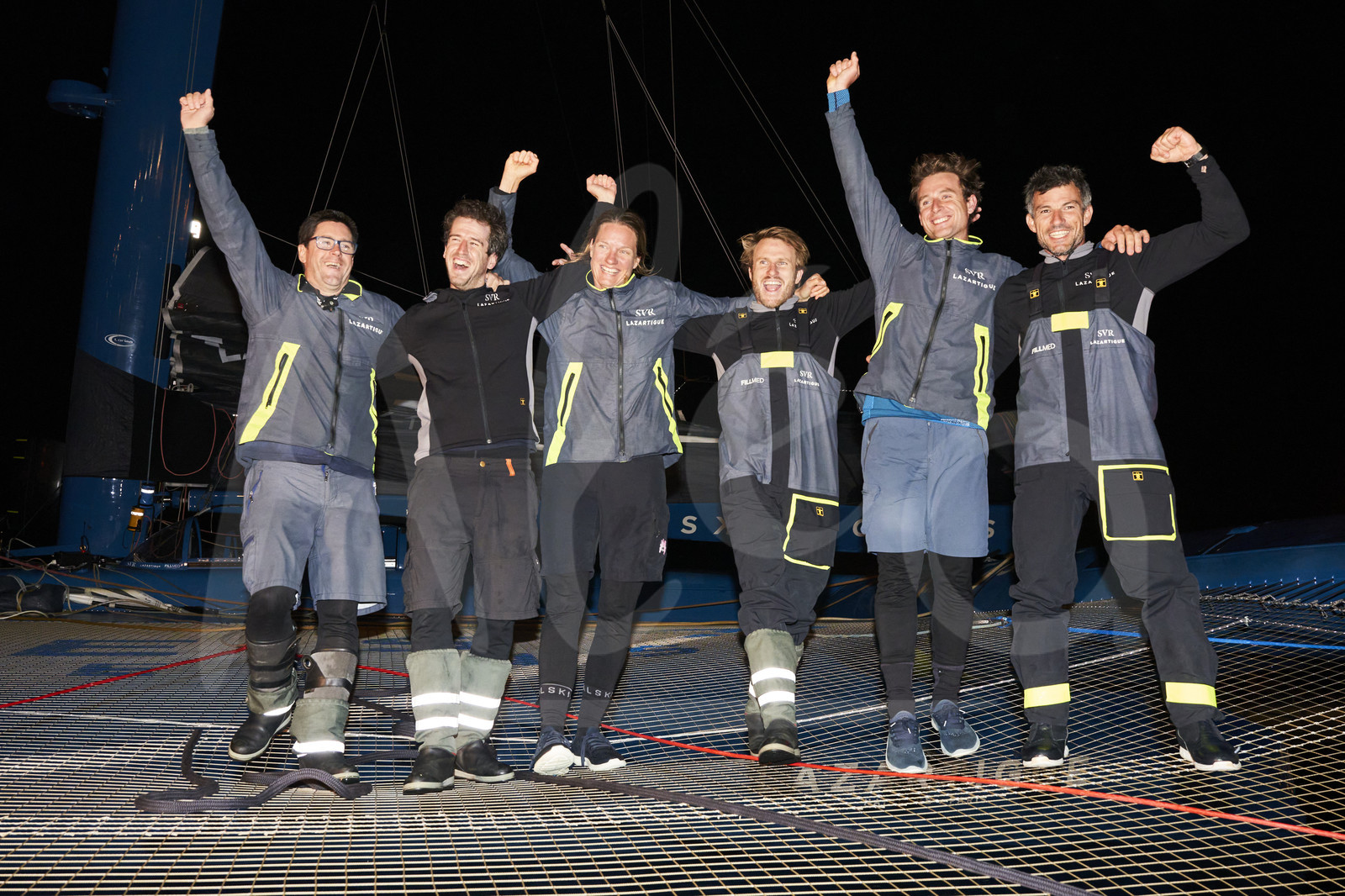 | Description | SVR LAZARTIGUE, Skipper: François Gabart, Class: Ultim 32/23 , Sail No: 1, LOA: 32, Design: Ultim, County/State: FRANCE is pictured celebrating with his crew after winning the Ultim category during the Fastnet Race 2023 from Cowes to Cherbourg, on July 23, 2023. Photo by Carlo Borlenghi / Alea |