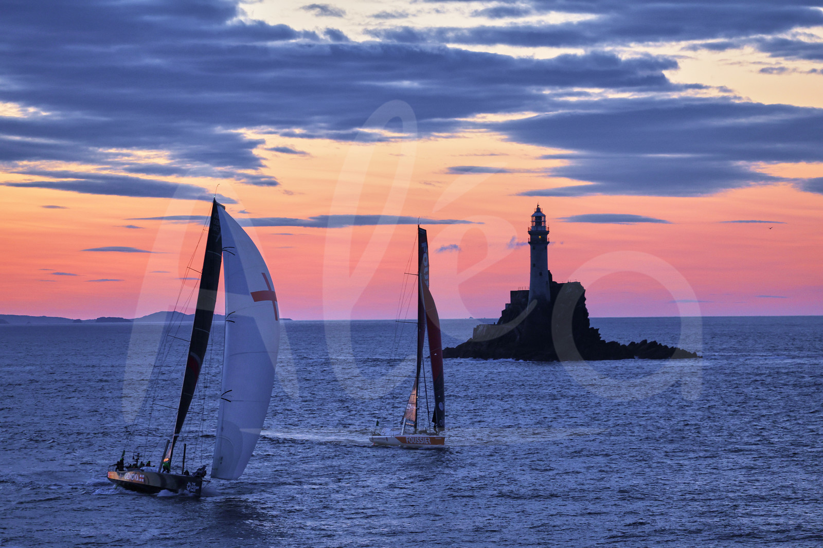 | Description | SISI, Skipper: Gerwin Jansen, Class: IRC Super Zero, Sail No: AUT1, LOA: "20, 37", Design: VO 65, County/State: UK FOUSSIER - MON COURTIER ENERGIE, Skipper: Sébastien Marsset, Class: IMOCA 60 , Sail No: FRA83, LOA: 18, Design: IMOCA 60, County/State: FRANCE is captured in action during the Fastnet Race 2023 from Cowes to Cherbourg, on July 24, 2023. Photo by Carlo Borlenghi / Alea |