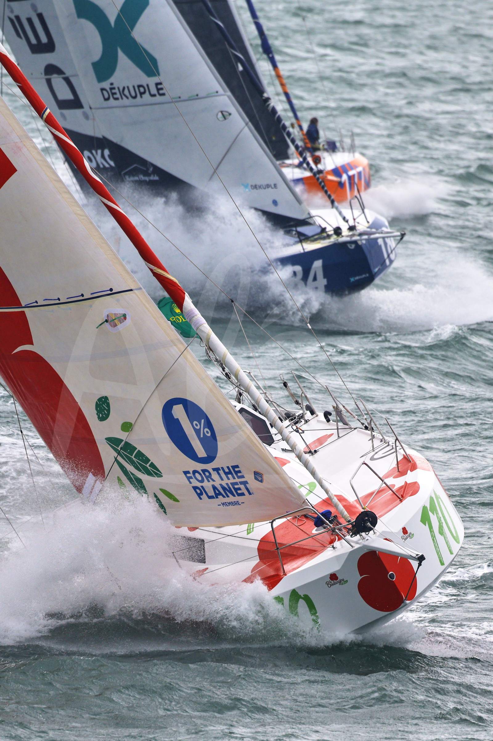 | Description | FOR THE PLANET, Skipper: Sam Goodchild, Class: IMOCA 60 , Sail No: FR100, LOA: 18, Design: IMOCA 60, County/State: FRANCE DÉKUPLE, Skipper: William Mathelin-Moreaux, Class: Class 40, Sail No: FRA184, LOA: "12, 19", Design: Class40, County/State: FRANCE is captured in action during the Fastnet Race 2023 from Cowes to Cherbourg, on July 23, 2023. Photo by Carlo Borlenghi / Alea |